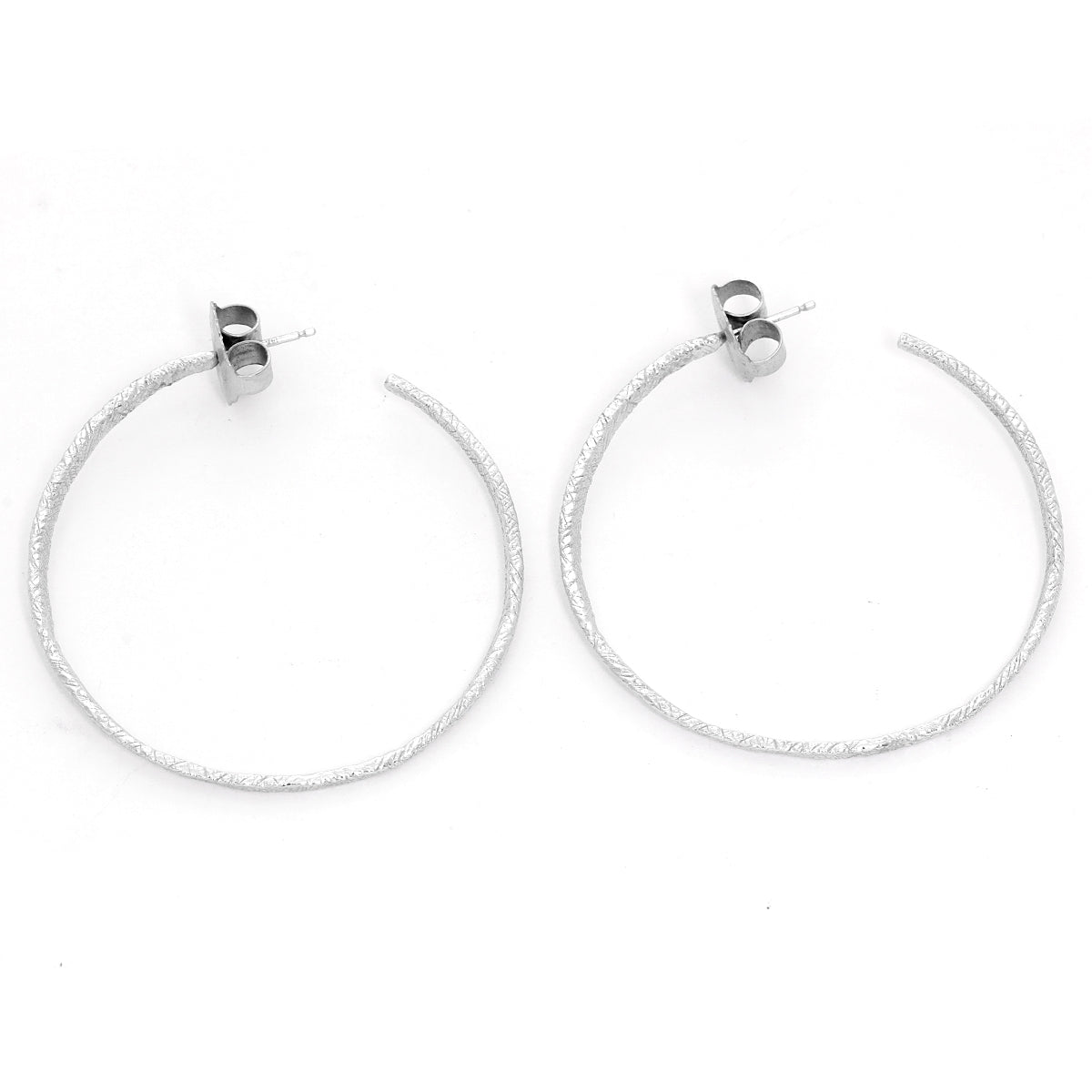 18K White Gold Hammered Earring Hoops - . 1 3/4 in diameter. .2 mm in thickness. Total weight of 7.7 grams. Perfect for an every day look.
