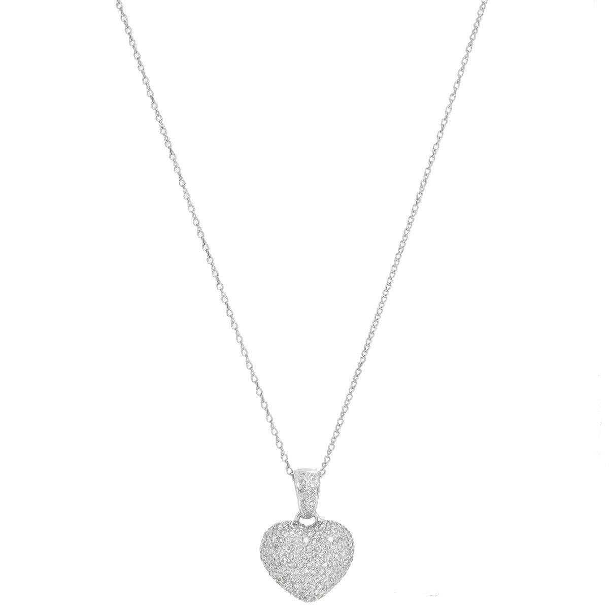 18K White Gold Pave Diamond Necklace - Beautiful Pave white gold diamond heart measuring 1 inch. on a 20 inch white gold chain. Approx. 1 cts of diamonds. Pre-owned with custom necklace box.