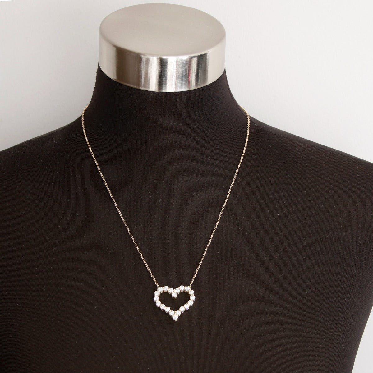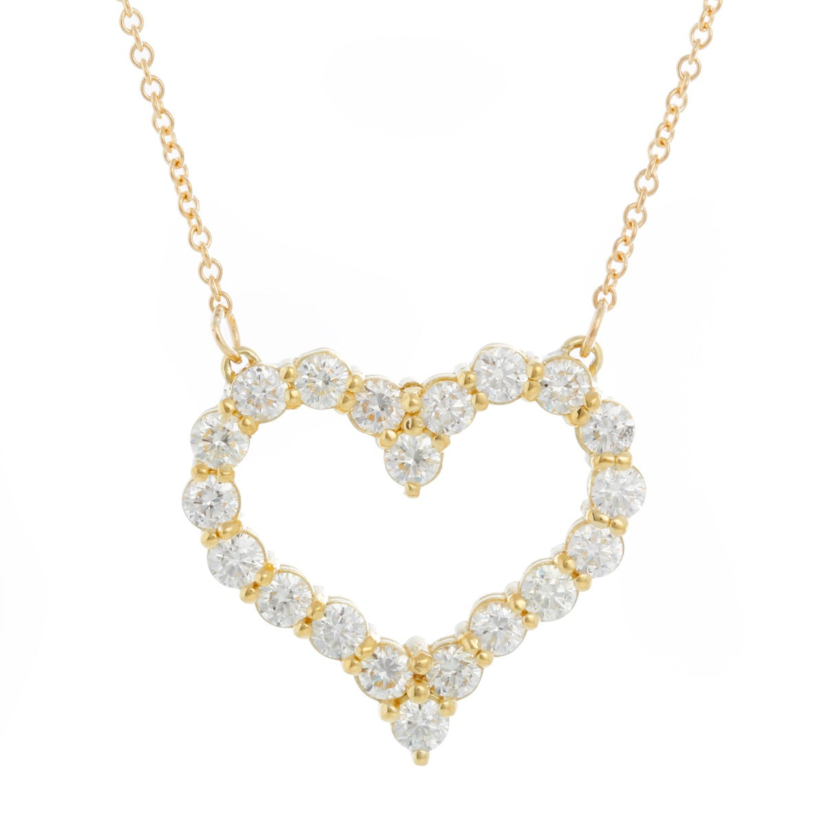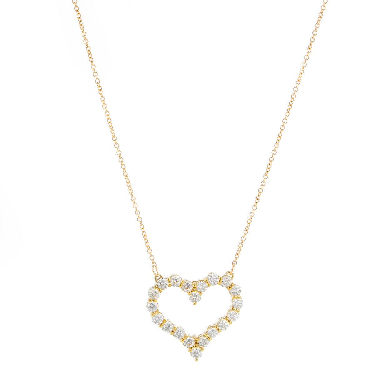 18K Yellow Gold Diamond Heart Necklace 3.22 cts - Beautiful heart pendant with 20 round brilliant diamonds set in 18K Yellow gold. Weighing 3.22 cts. Clarity VS/SI1. Color H . Length 22 inches with 2" extender. Total weight 11.9 grams. Size of pendant 1" x 1" .