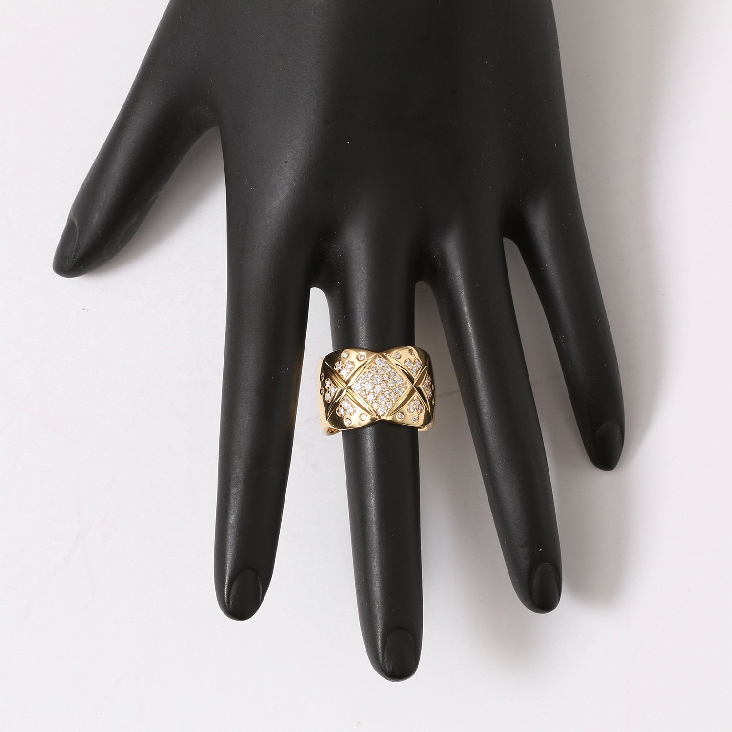 18K Yellow Gold Quilted Pave Diamond Ring - Unused beautiful 18K yellow gold band with pave diamond rings with .57 cts. Total weight 15.8 grams. Ring size 6.5 .