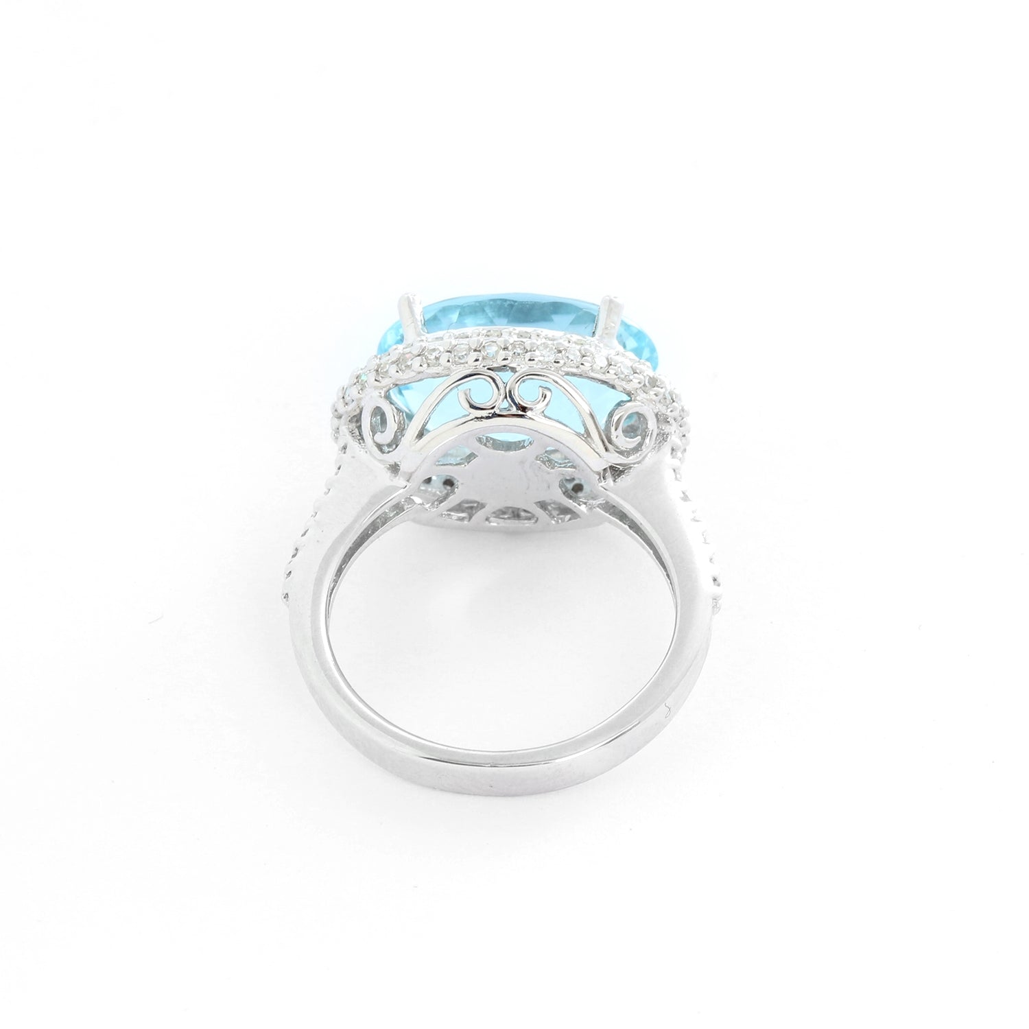 Aquamarine and Diamond 14K White Gold Ring Size 6.5 - Oval-cut aquamarine set in 14K White gold surrounded by brilliant cut diamonds. Approx Aquamarine weight is 6.3 grams. Pre-owned with custom box .