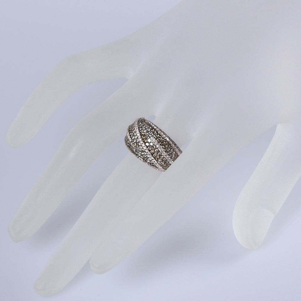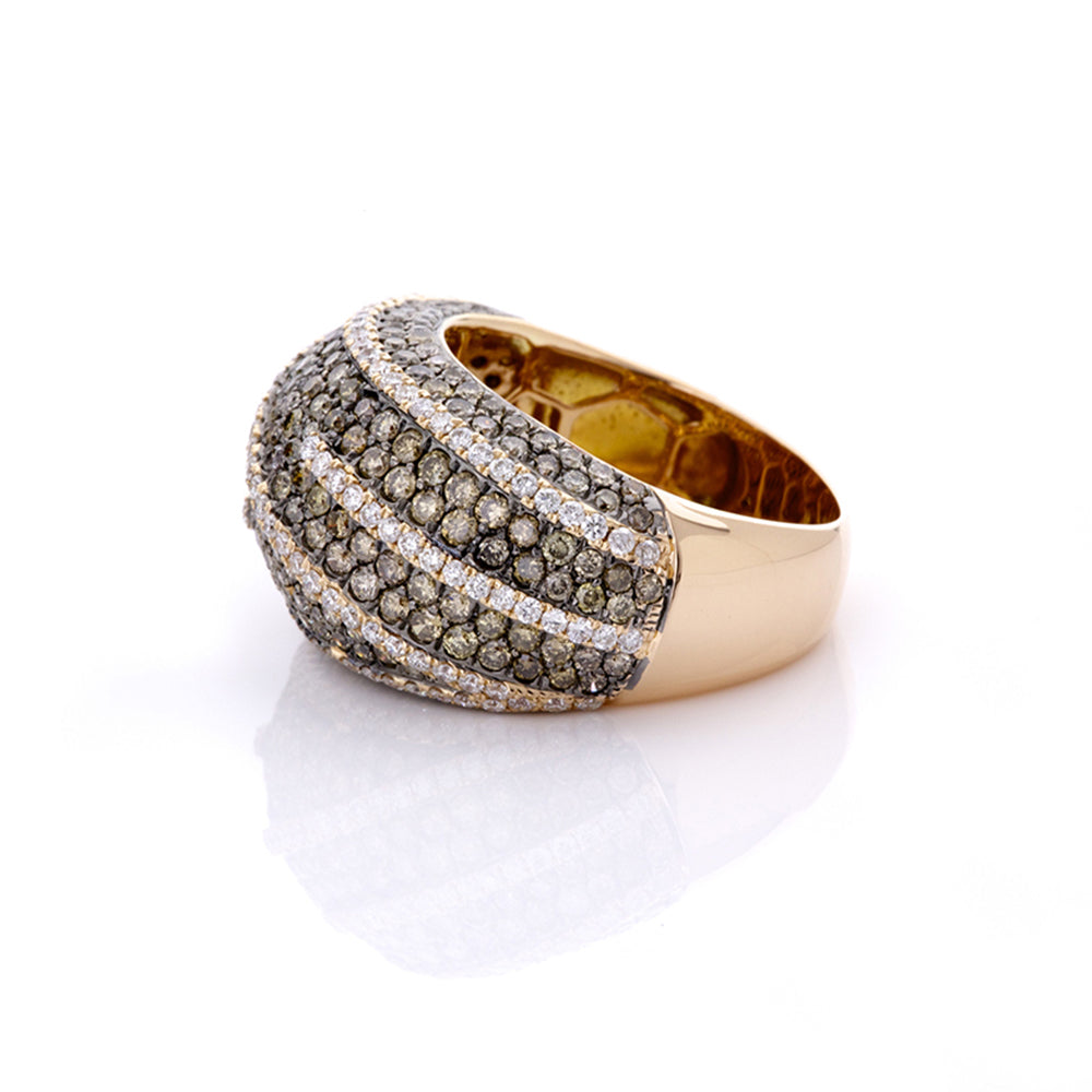 This beautiful ring has 2.69 carats of brown and white diamonds set in 18k rose gold. Total weight is 9.6 grams. Size 7.