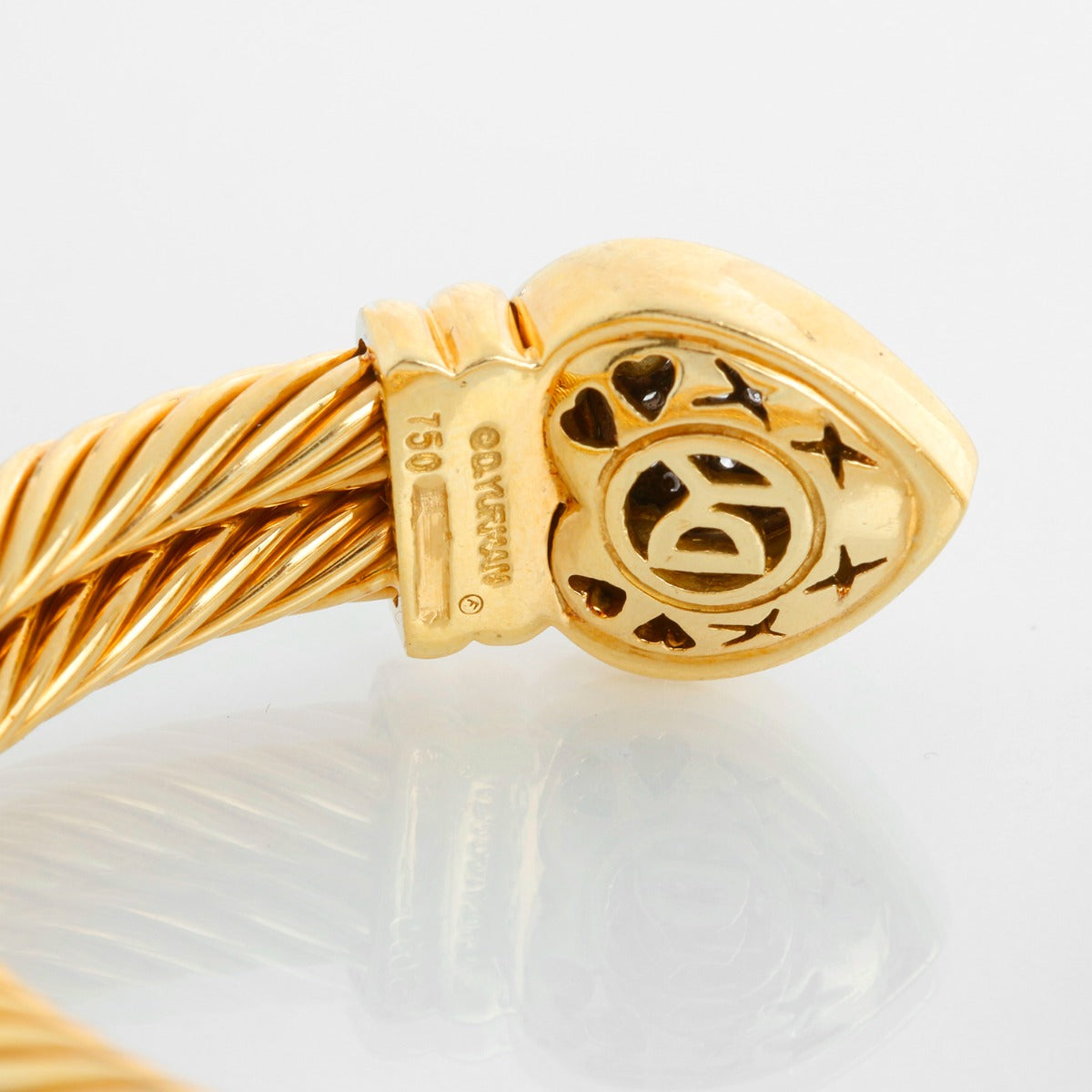 • David Yurman Double Cable Pave Diamond Heart Cuff Bracelet