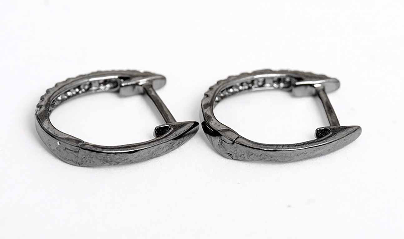 Diamond 14k Black Gold Mini Hoop Earrings Apx. .13 cts. These are look-alikes of the $750 Nikki Baker hoops that are shown on her site as being worn by Katy Perry and Kaley Cuoco. These mini hoops are apx. 1/2-in. x 1/2-in. 14k black gold and diamonds apx. .13 cts.
