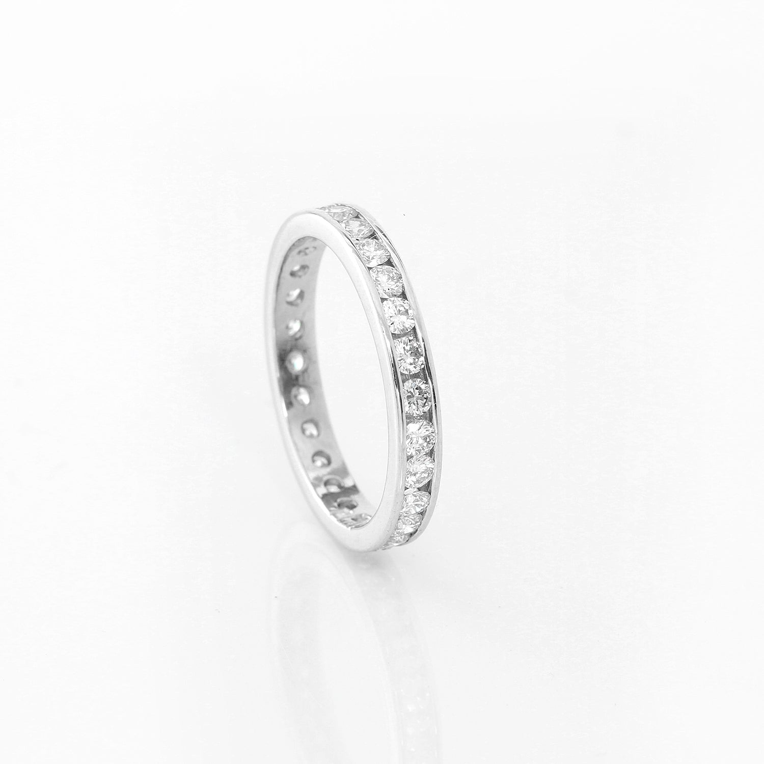 Diamond Platinum Band Size 6 1/4 - . Round Brilliant Cut diamond band set in Platinum approx. .78 cts. - F-G Color. VS clarity. Total weight 3.3 grams.