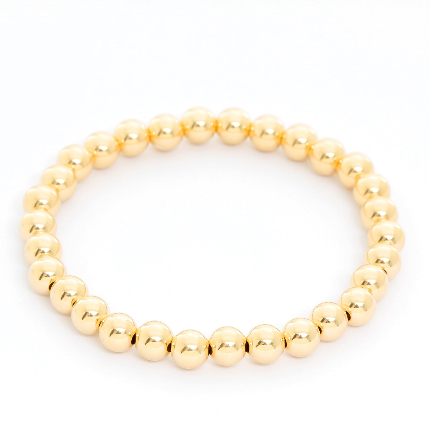 14K Gold filled bracelets - Five stack-able bead bracelet. Pictured one 3 mm, one 4 mm, two 5mm, one 6mm. New with DeMesy pouch. Wearable all day and in the shower and they will still hold their luster and stretch.