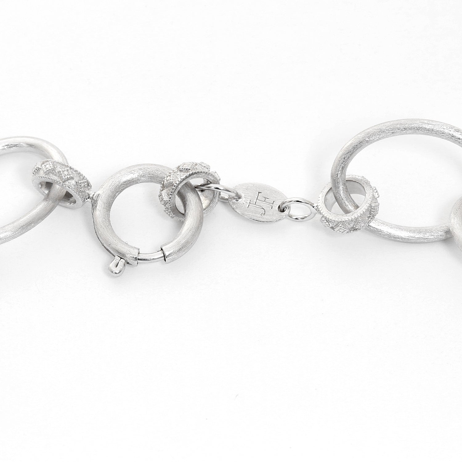 Jude Frances Mixed Metal Large Chain Necklace with Diamond Kits - Sterling Silver hoops with a 18K Yellow gold loops with diamond rondells with the signature brushed JFJ finish. Total length 18 inches. Total diamond weight .1ct.