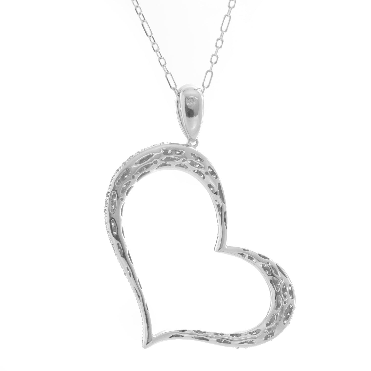 Pave Diamond Heart Pendant 18K White Gold Necklace - Beautiful asymmetrical heart shaped pendant. approx. 200 stones weighing 3 cts. Pendant measures 2 inches. Total length 20 inches. Total weight 11.5 grams .