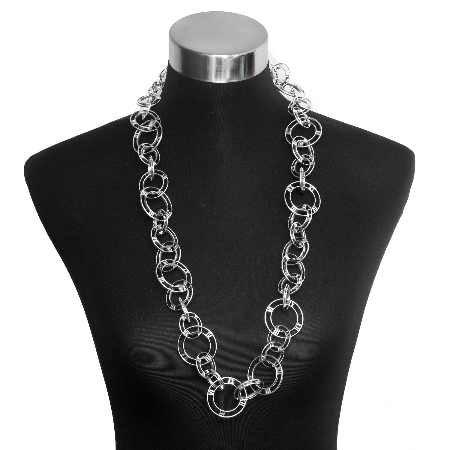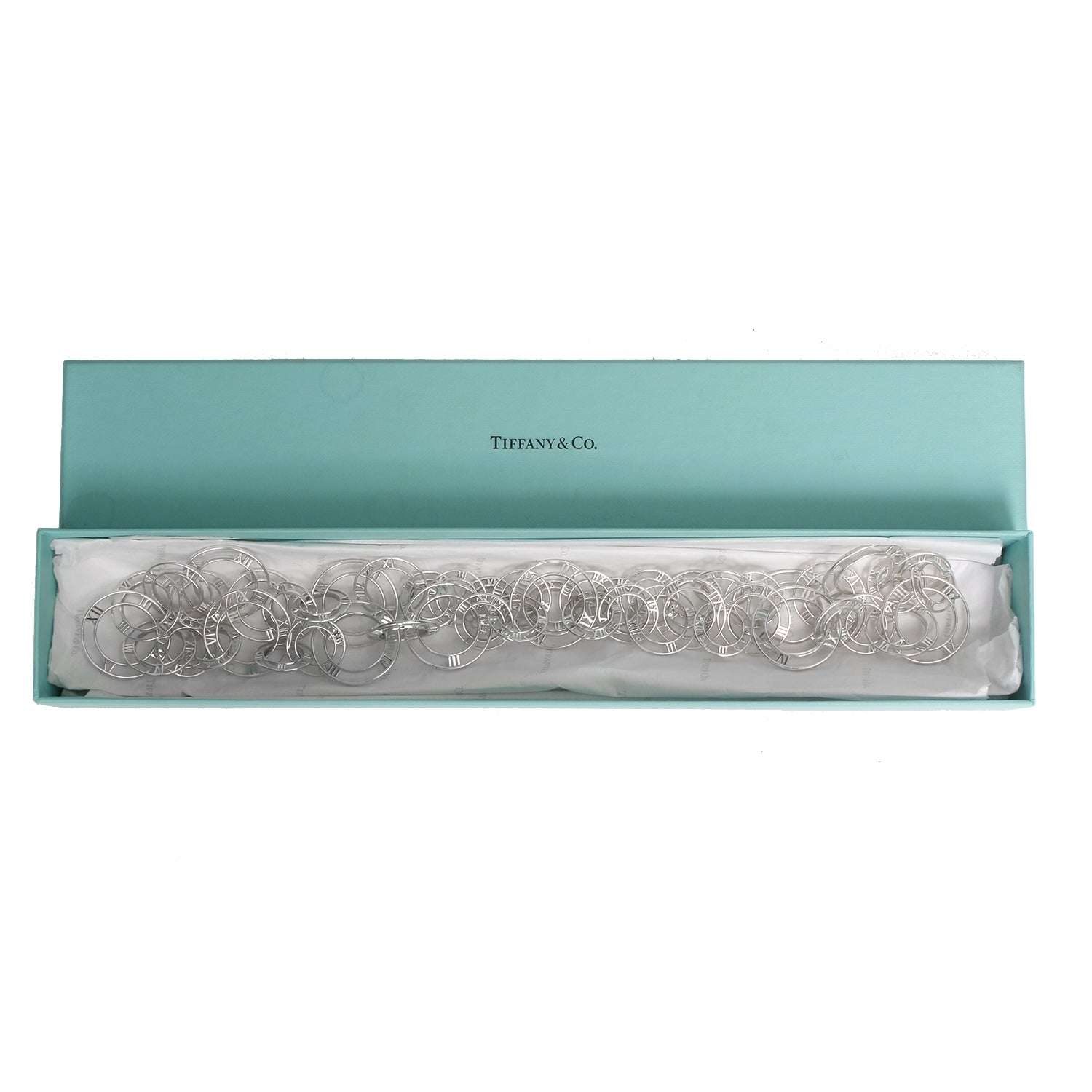 Tiffany Atlas Collection Necklace - Sterling Silver necklace with round loops reminiscent of the Atlas clock at the Tiffany Flagship store. Total length 32 inches. Total weight 211.2 grams. Harllmarks: 925, Makers Mark, Designer Signature. Pre-owned with Tiffany's Box.