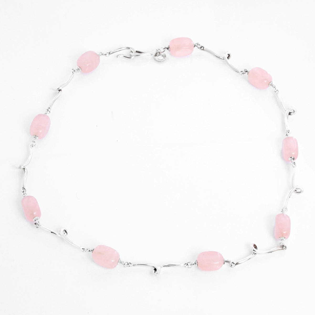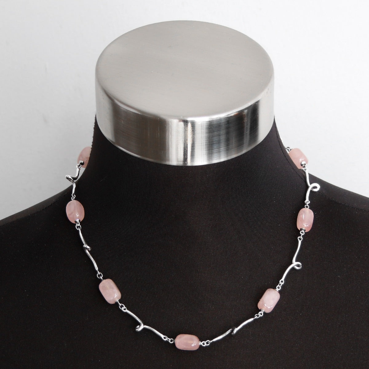 Tiffany & Co. Sterling Silver Rose Quartz Twirl Link Necklace - Nine rose Quartz stones on a 18 inch necklace. Sterling silver. Hallmarks: 925, designer signature. Pre-owned with Tiffany pouch .