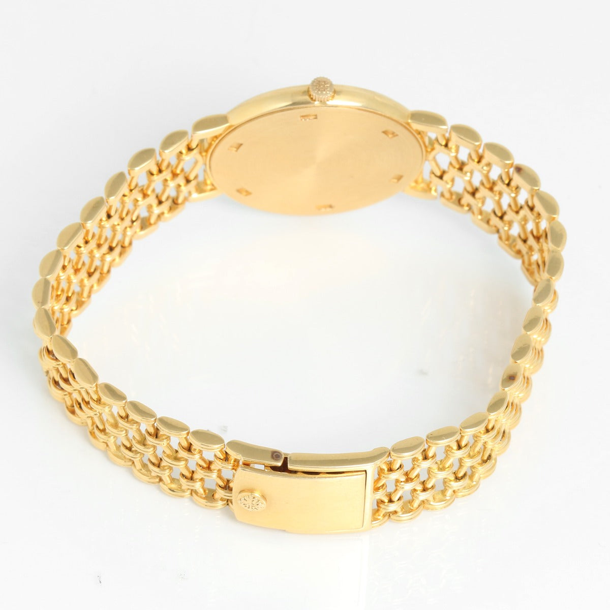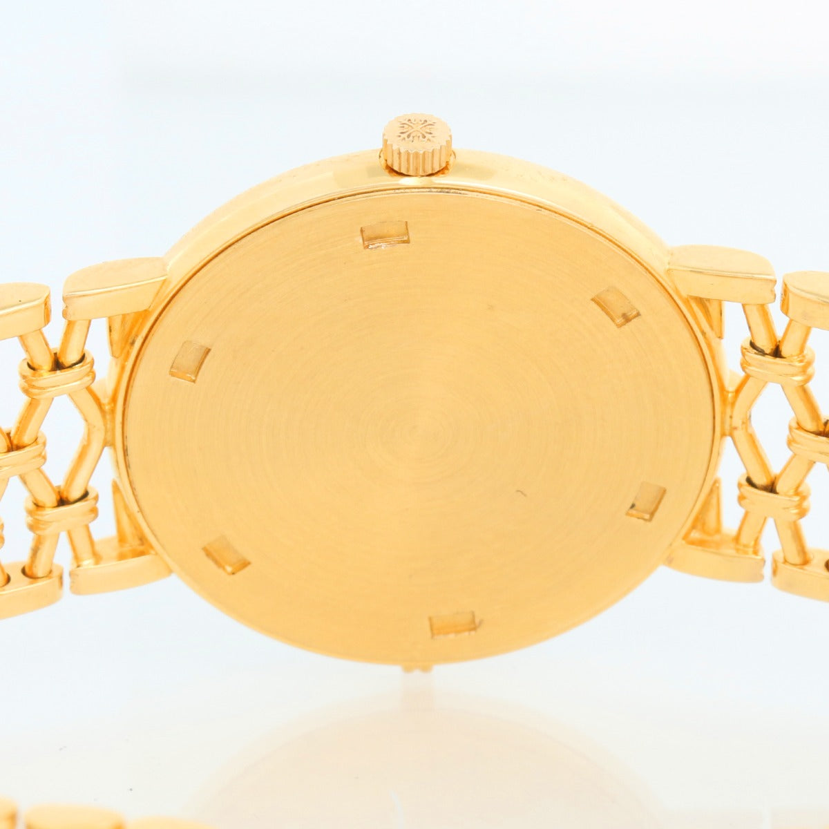 Patek Philippe Calatrava 18k Yellow Gold Men's Watch 3821/1 - Manual winding. 18k yellow gold case (31mm diameter). White dial with black Roman numerals. Original Patek Philippe 18k Yellow Gold lattice bracelet. Pre-owned with Patek Philippe travel box .