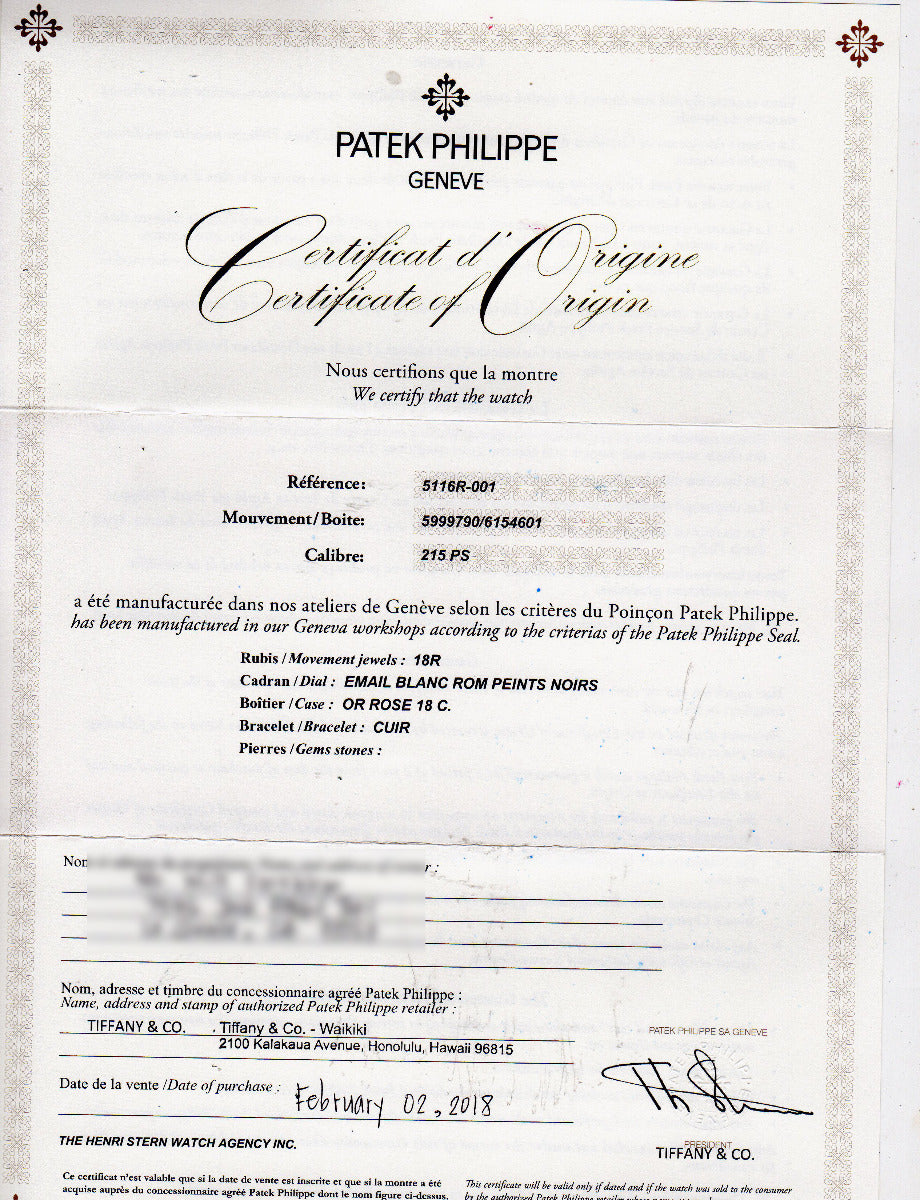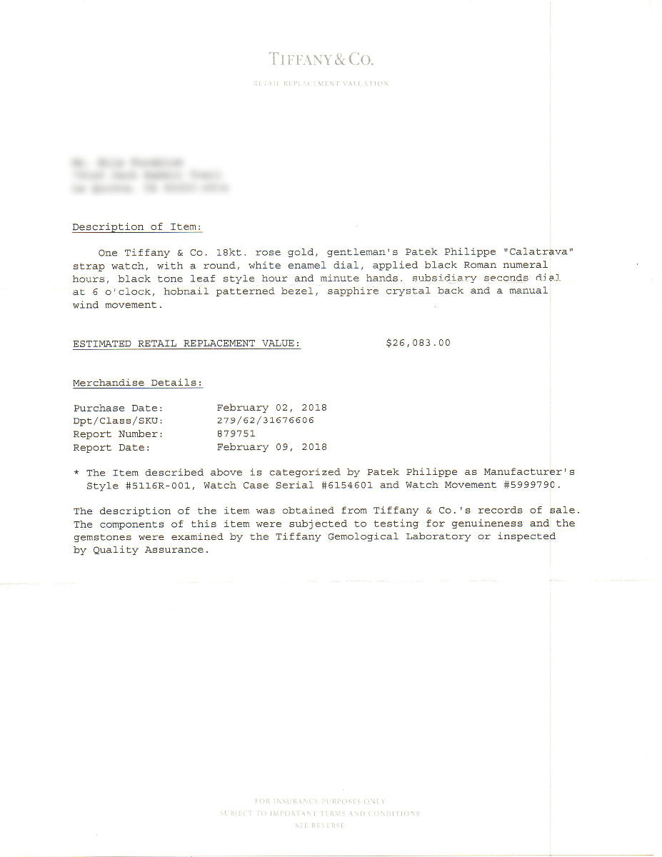 Extremely rare and collectable with all original Tiffany & Co. paper work. The reference 5116 is one of the few Patek Philippe references that was ever offered in one metal only, in this case rose gold.