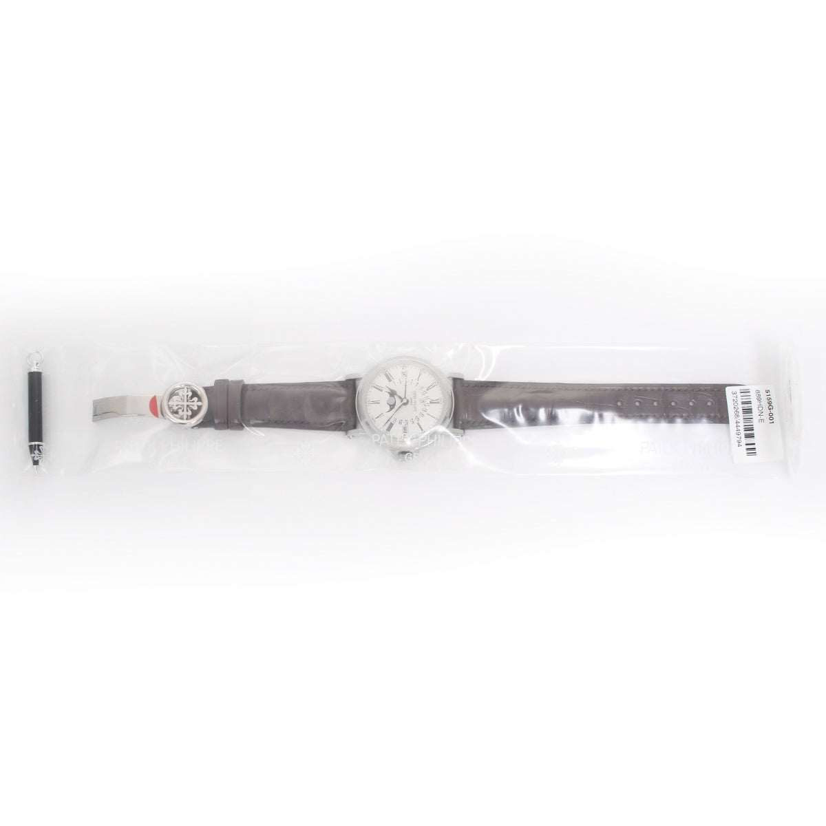 Patek Philippe & Co. Complications Perpetual Calendar 5159 G - Automatic. 18K White gold. Silver opaline dial with Roman Numerals; Hours, Minutes, Seconds, Moon phase and Perpetual Calendar. Brown leather crocodile strap with deployant buckle. Unused with Patek Philippe & Co. winding box. Archive papers can be ordered after 5 years.