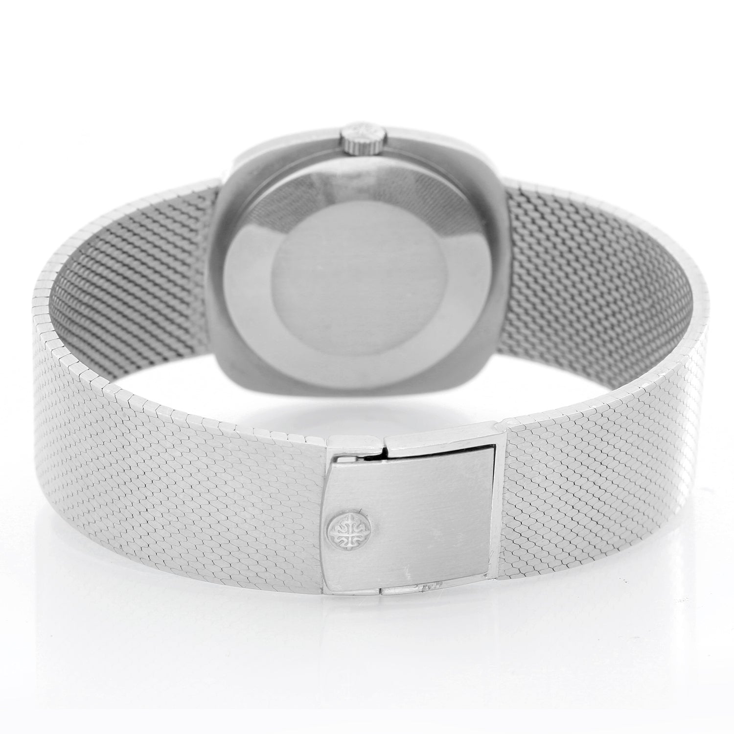 Patek Philippe Vintage Cushion White Gold Watch Ref. 3543 / 2 - Manual . White gold ( 31 mm ) . Blue metallic dial with raised stick hour markers . White gold mesh band. Will fit up to a 6 3/4 inches . Pre-owned with custom box .