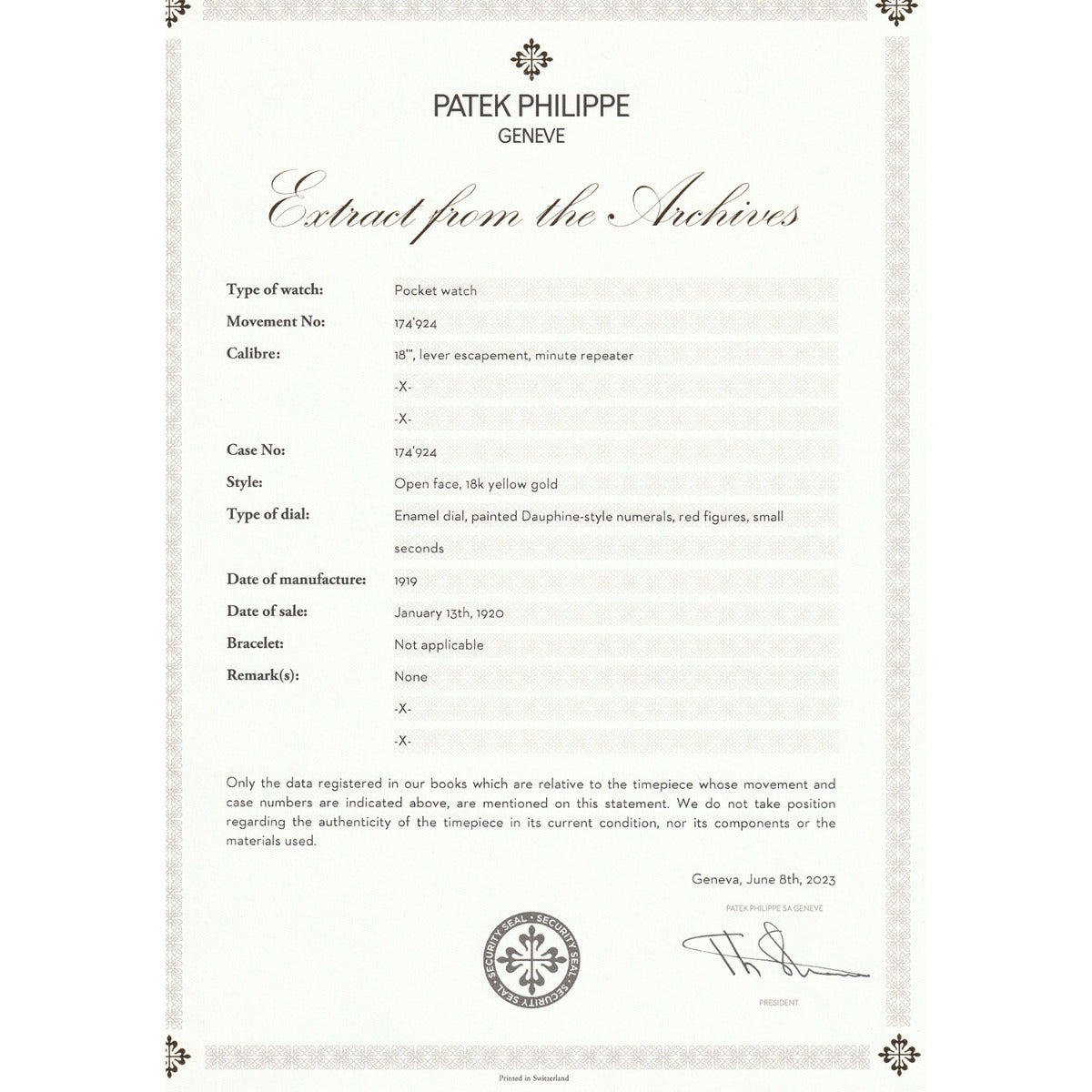 - Manufacturer: Patek Philippe