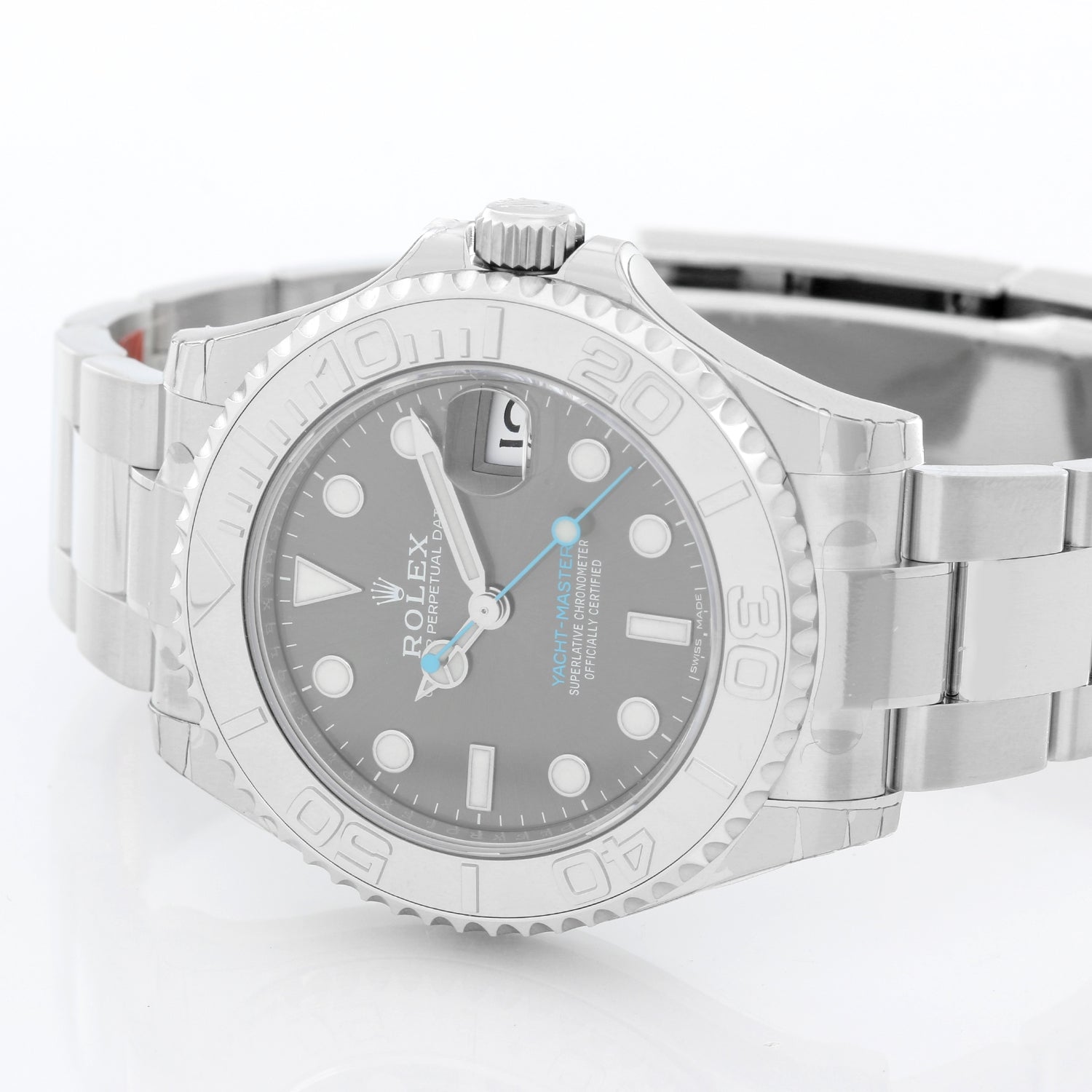 Rolex Dark Rhodium Yacht-Master Men's Stainles Steel Watch 268622 - Automatic winding, 31 jewels, Quickset, sapphire crystal, blue second hand. Stainless steel case with platinum bezel (37mm diameter). Dark Rhodium dial. Stainless steel Oysterlock bracelet. Unused with Rolex box and papers.