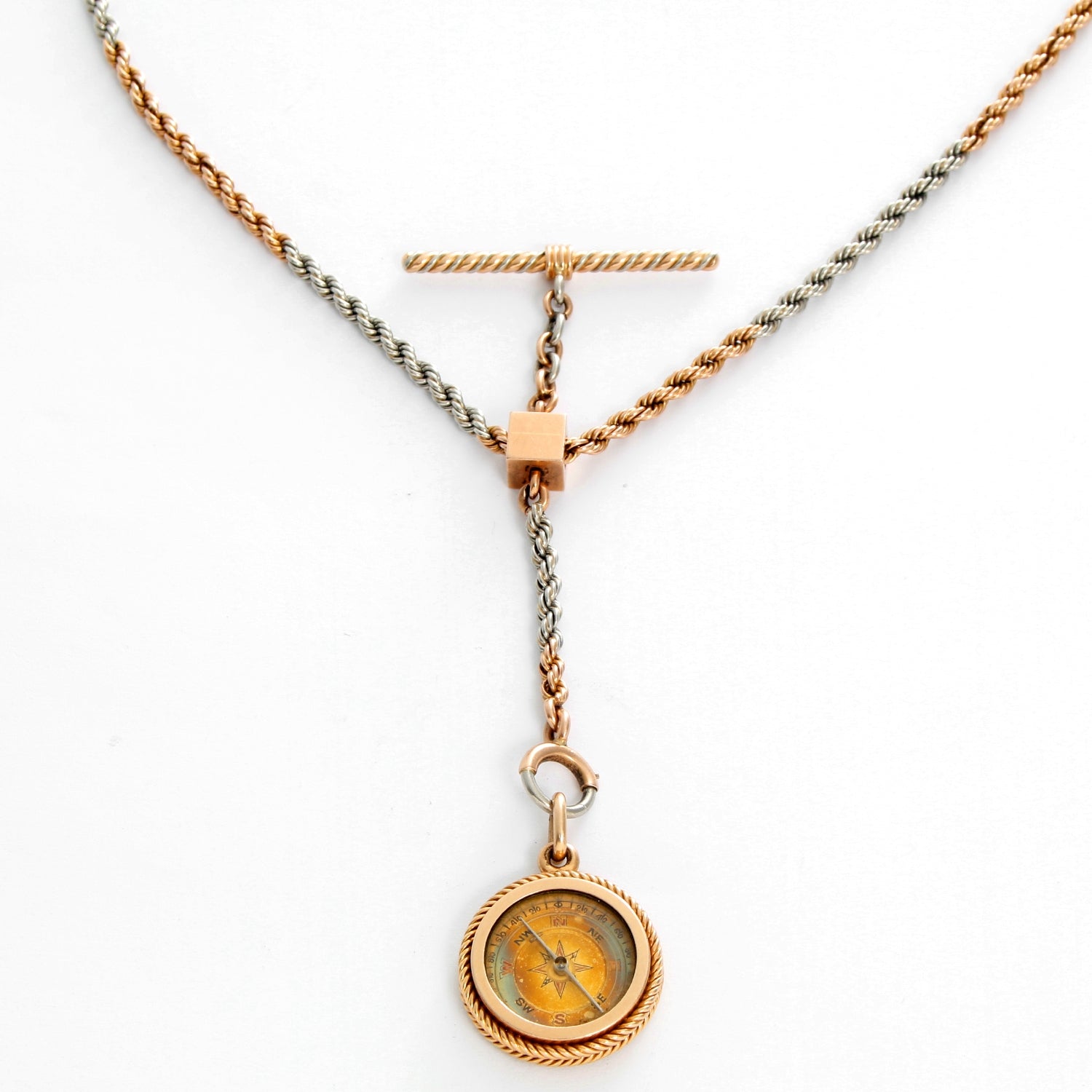 • 14K 2- Tone Pocket Watch Chain with Compass Watch Fab