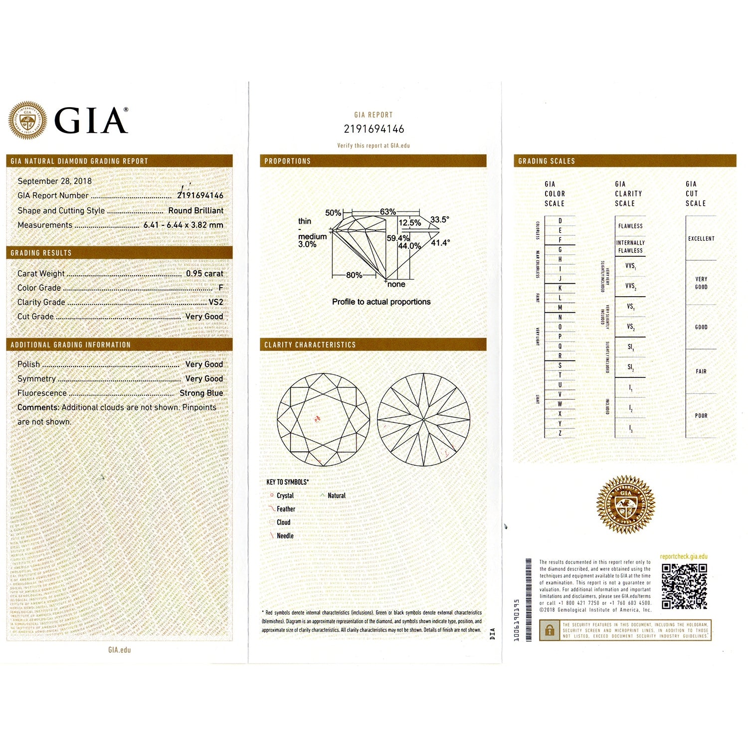 14K White Gold Diamond Studs - Pair of diamond studs weighing .95 cts with F color and VS-2 clarity and the other weighing .97 cts with G color and VS-2 clarity set in a handmade prong. Comes with a valuation from Christies Auction House.