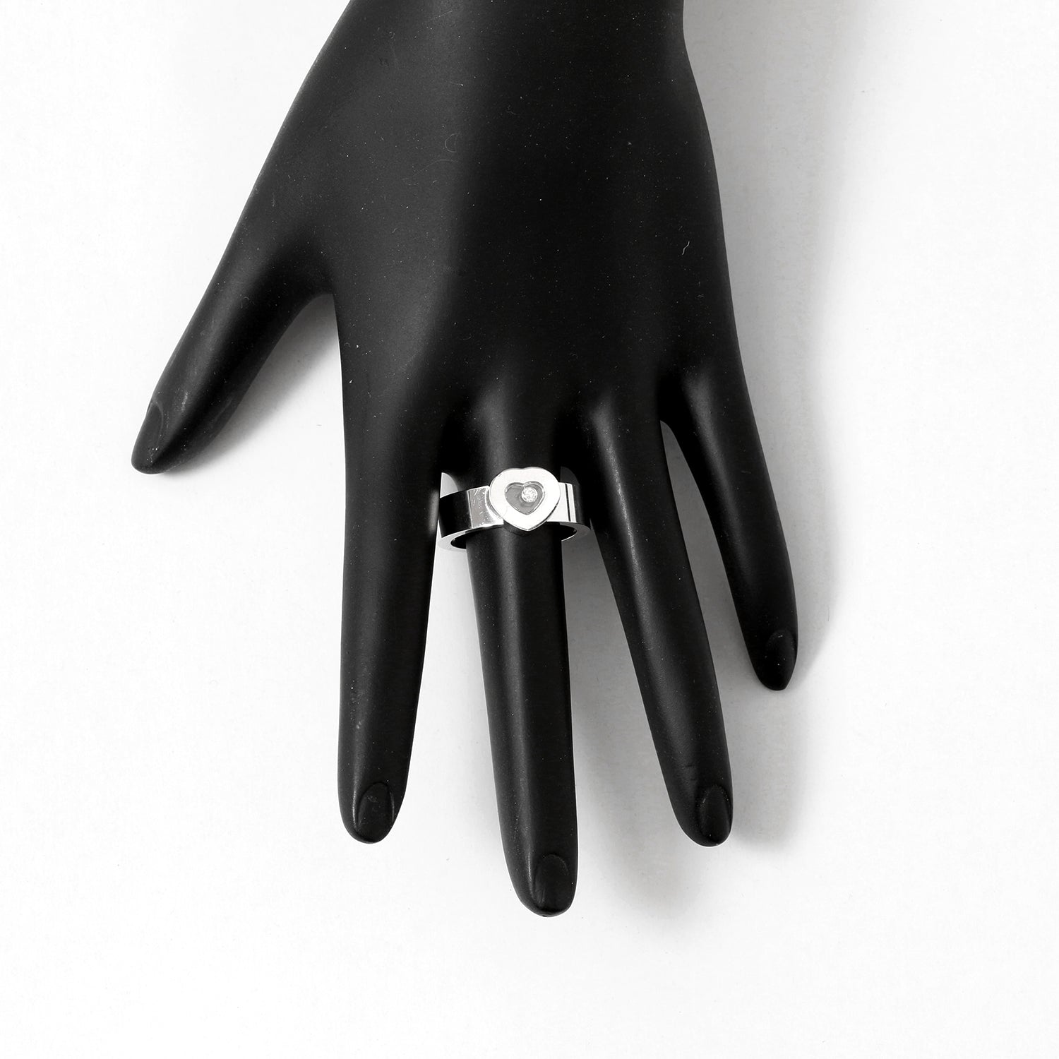 • 18K White Gold Chopard Heart Diamond Ring SZ 8.5