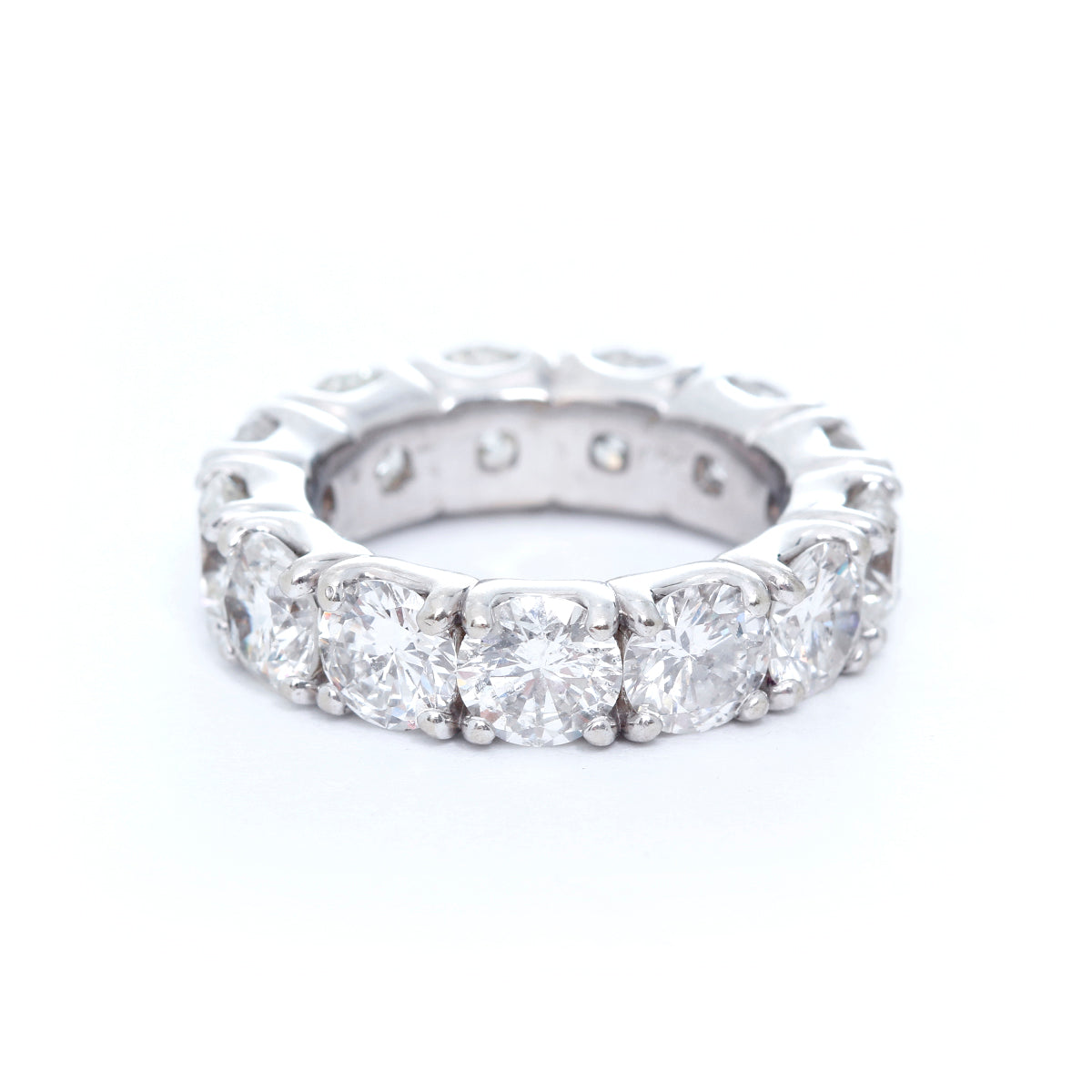 18K White Gold Diamond Eternity Band Size 6 - 18K White Gold Diamond Eternity Band -Truly stunning eternity band with 13 round brilliant cut diamonds equaling 8cts. Diamond clarity SI. Color H-I. Total weight 9.9 grams. Size 6. Radiant wedding band, perfect for that special person in your life..