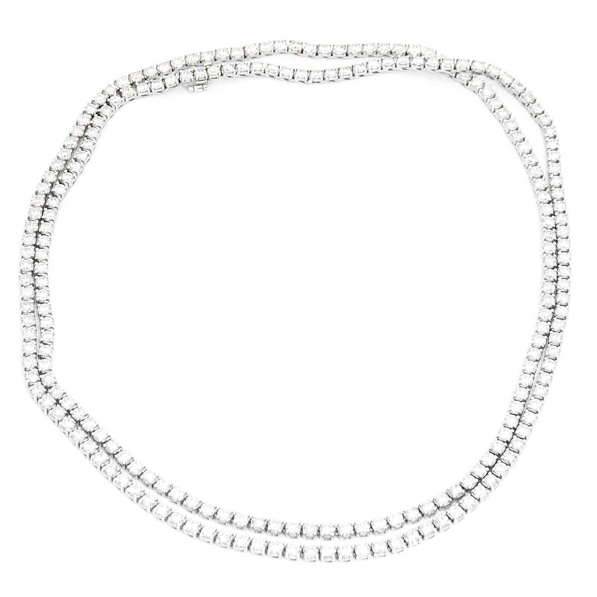 Stunning 18k White Gold 40.37ctw. Diamond Opera Necklace - This opera necklace features 40.37 ctw. diamonds (SI-clarity and G-H color) set in 18k white gold. Necklace measures apx. 36-inches in length. Total weight is 66.5 grams. This necklace is absolutely stunning and is perfect for special occasions!.