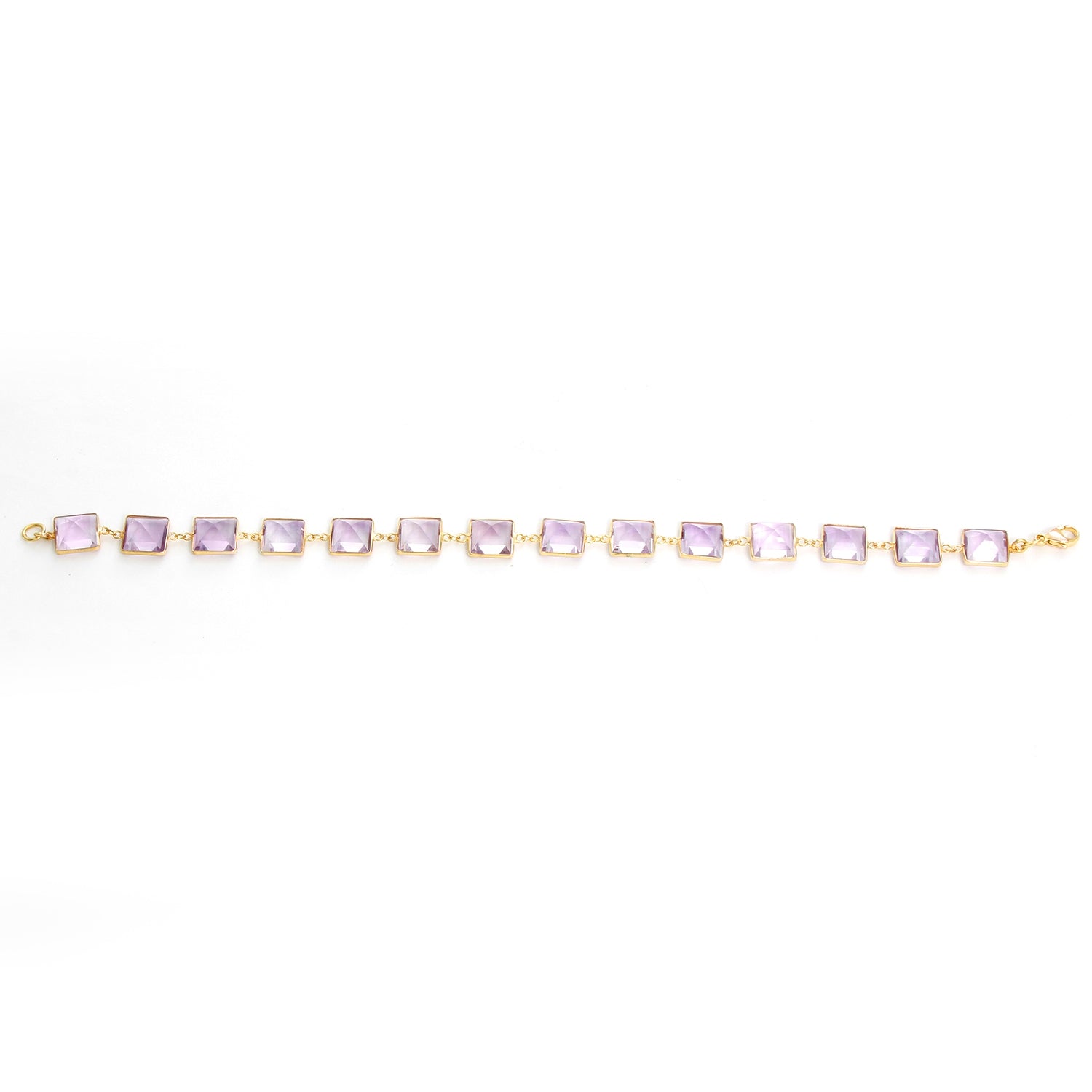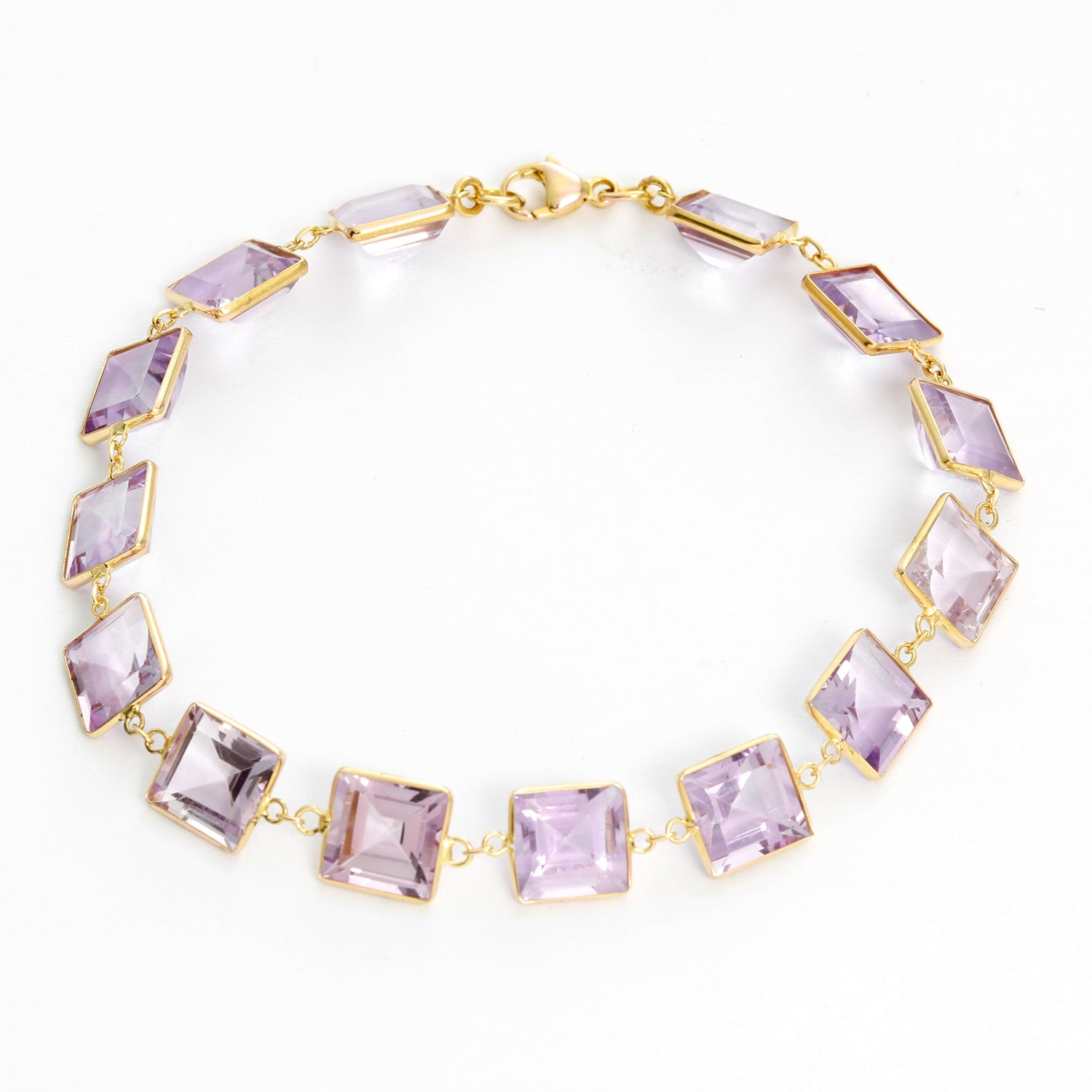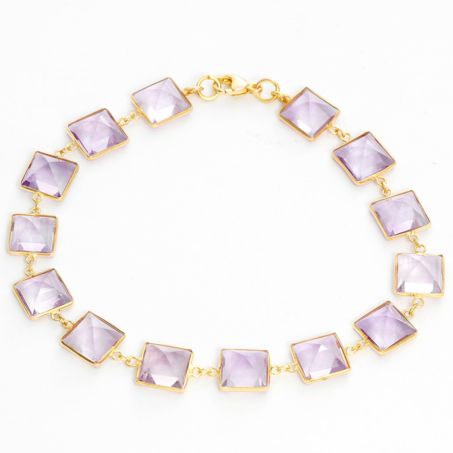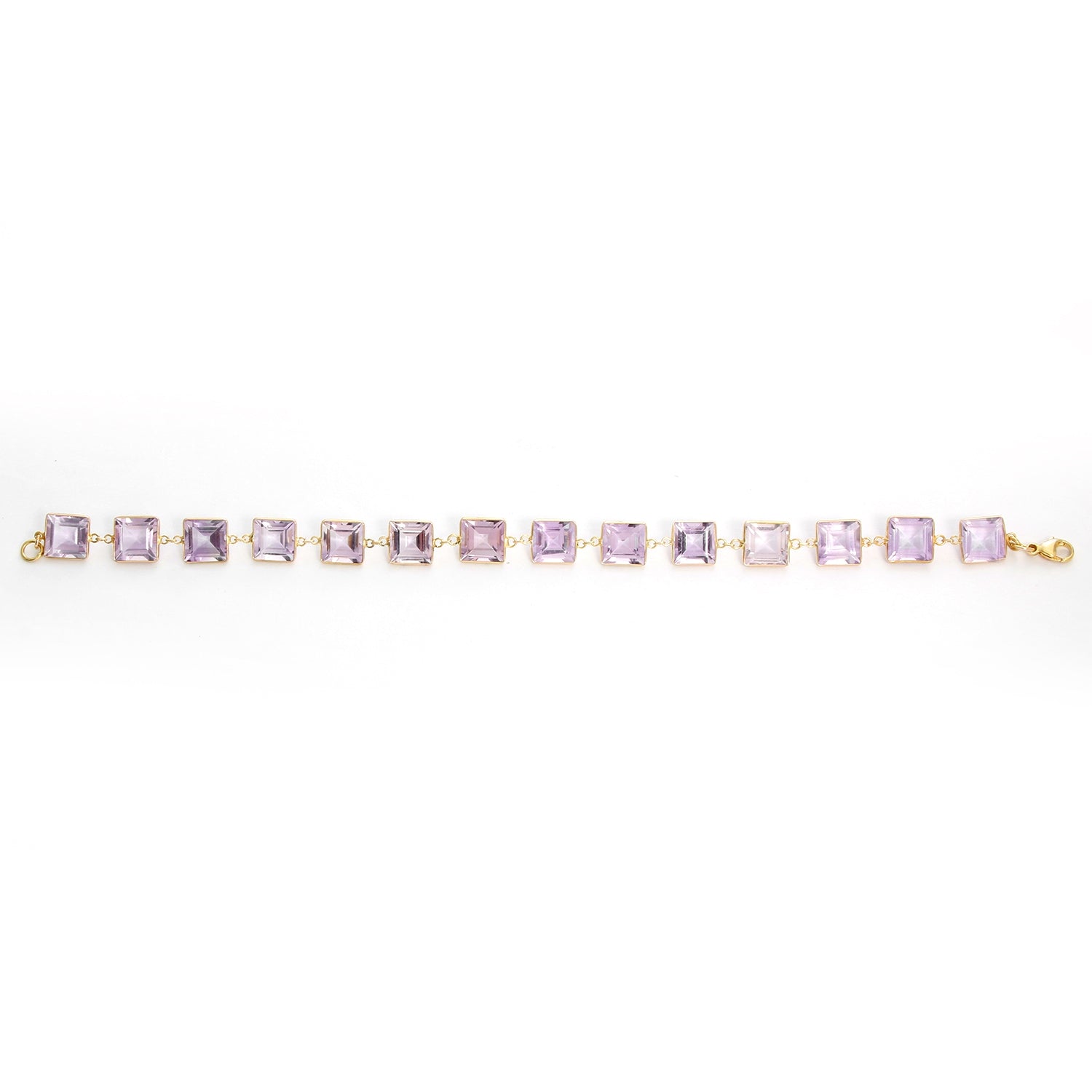 18k Yellow Gold Amethyst Bracelet - Gorgeous light purple amethyst bracelet that measures 6 3/4 inches. 13 square cut amethyst are strung together by 18k yellow gold. New with DeMesy box.
