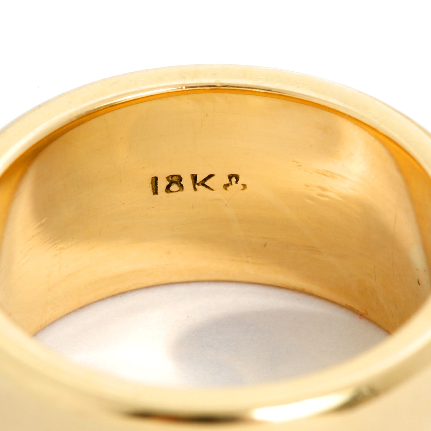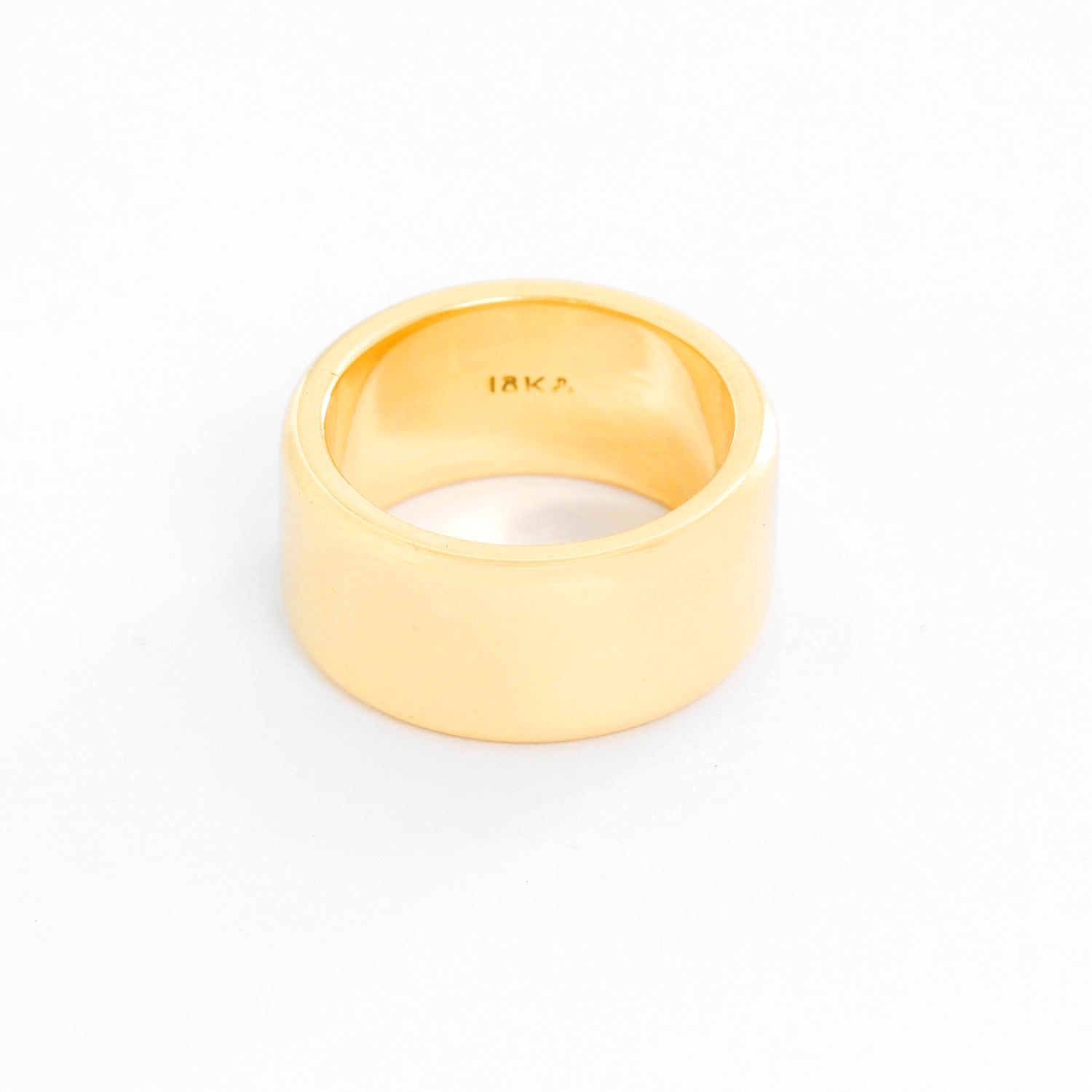 18K Yellow Gold Thick Wedding Band Size 6.5 - 18K Yellow gold gold band. Thickness 9mm. Total weight 15.3 grams. Size 6.5. Hallmarked 18K.