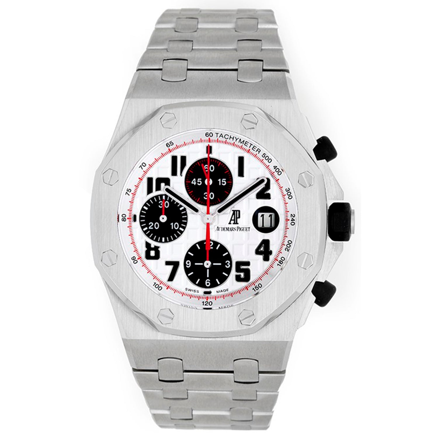 Audemars Piguet Royal Oak Offshore Men's Stainless Steel Sports Watch 26170ST.OO.1000ST.01 - Automatic winding; chronograph. Stainless steel case (42mm x 54mm). Silver waffle dial with black Arabic numerals and hour, minute and seconds recorders; date at 3 o'clock. Stainless steel Royal Oak bracelet. Unused with box and papers.