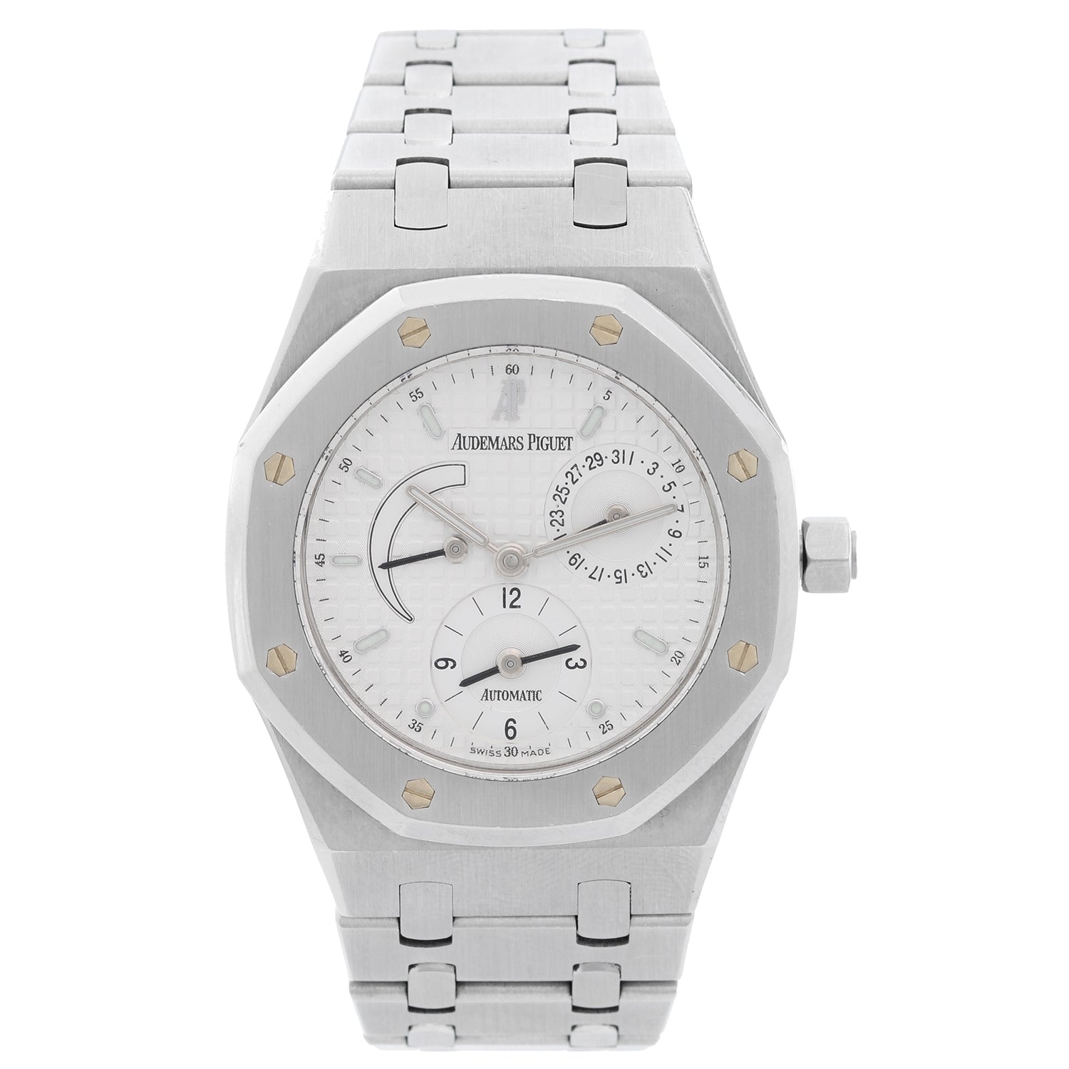Audemars Piguet Steel Royal Oak Dual Time 25730 /ST/00789/ST/02 - Automatic winding. Stainless Steel case ( 36 x 46mm ). silver/ White dial with luminous markers. Stainless Steel integrated Audemars Piguet Royal Oak bracelet. Pre-owned with box.