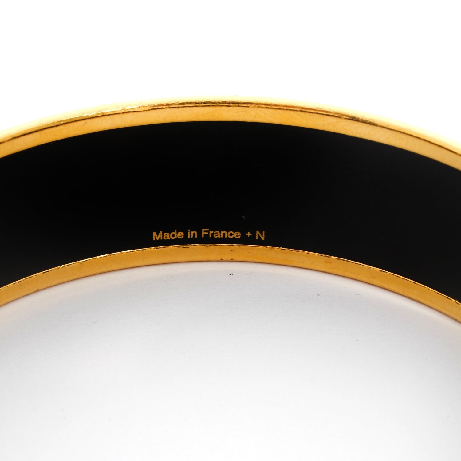 Balcons du Guadalquivir Wide Enamel Bracelet - 18K Yellow Gold plated and brass bracelet. Hallmarked : Makers Mark, Hermes Paris Made in France. Total weight 37.03 grams. Will fit up to a 7.5 inch wrist. Total width .5 inches. Perfect accessory to dress up or down.
