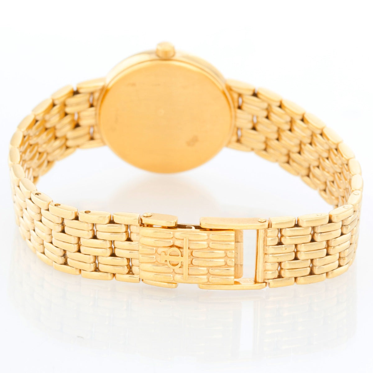 Baume & Mercier Ladies Classic Diamond Dial Watch 65323 - Quartz. 14K Yellow gold (23 mm). White dial with diamond hour markers . 14K Yellow gold bracelet; fits a 6 inch wrist bracelet. Pre-owned with Baume box and book.
