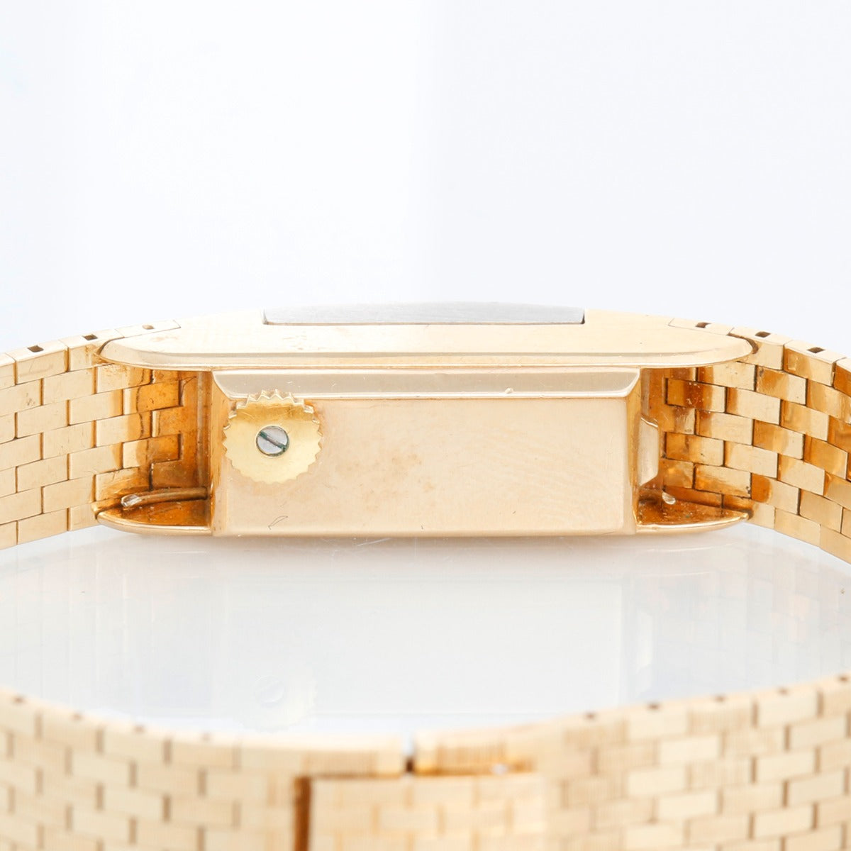 Blancpain 14k Pave Diamond Gold Backwind "Surprise" Watch For Neiman Marcus - Backwind winding; Baume Mercier Movement. 14K Yellow gold watch with pave diamond hinged cover ( 9 x 19 mm). Silver dial with gold hour markers. 14K Yellow gold bracelet; will fit up to a 6 inch wrist. Pre-owned with custom box.