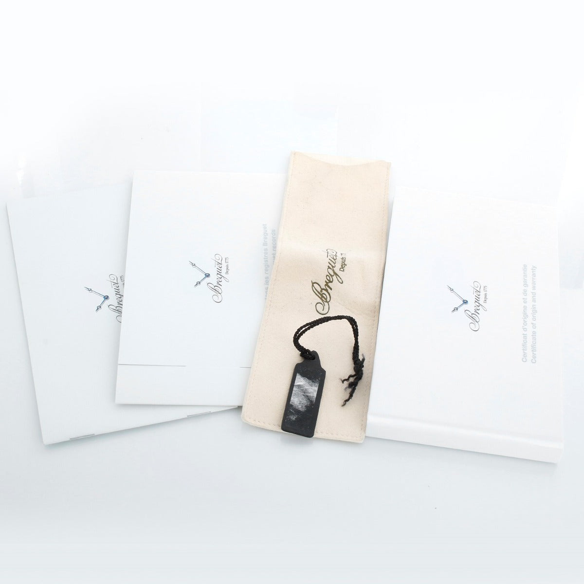 Breguet Le Reveil du Tsar Classique Alarm Dual Time 18k White Gold Men's Watch 5707 BB (5707BB/12/9V6) - Automatic winding; alarm with power reserve indicator; dual time. 18k white gold case with exposition back (39mm diameter). Silver guilloche dial with black Roman numerals; date and subseconds dial at 6 o'clock, alarm time at 3 o'clock, on/off at 12, power reserve at 11; second time zone at 9 o'clock. Blue Breguet croc strap band with 18k white gold deployant clasp. Pre-owned with Custom box and open papers