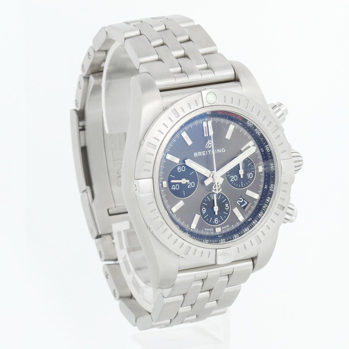 Breitling Chronomat B01 Automatic Men's Watch AB0115101F1A1 Special Edition - Automatic . Stainless Steel (44mm). Dark Grey Dial with date; three sub dial's at 3, 6 and 9 'o clock. Breitling Stainless Steel bracelet; will fit up to a 7 3/4 inch wrist . Pre-owned with box and card with an active Breitling warranty until 2026.