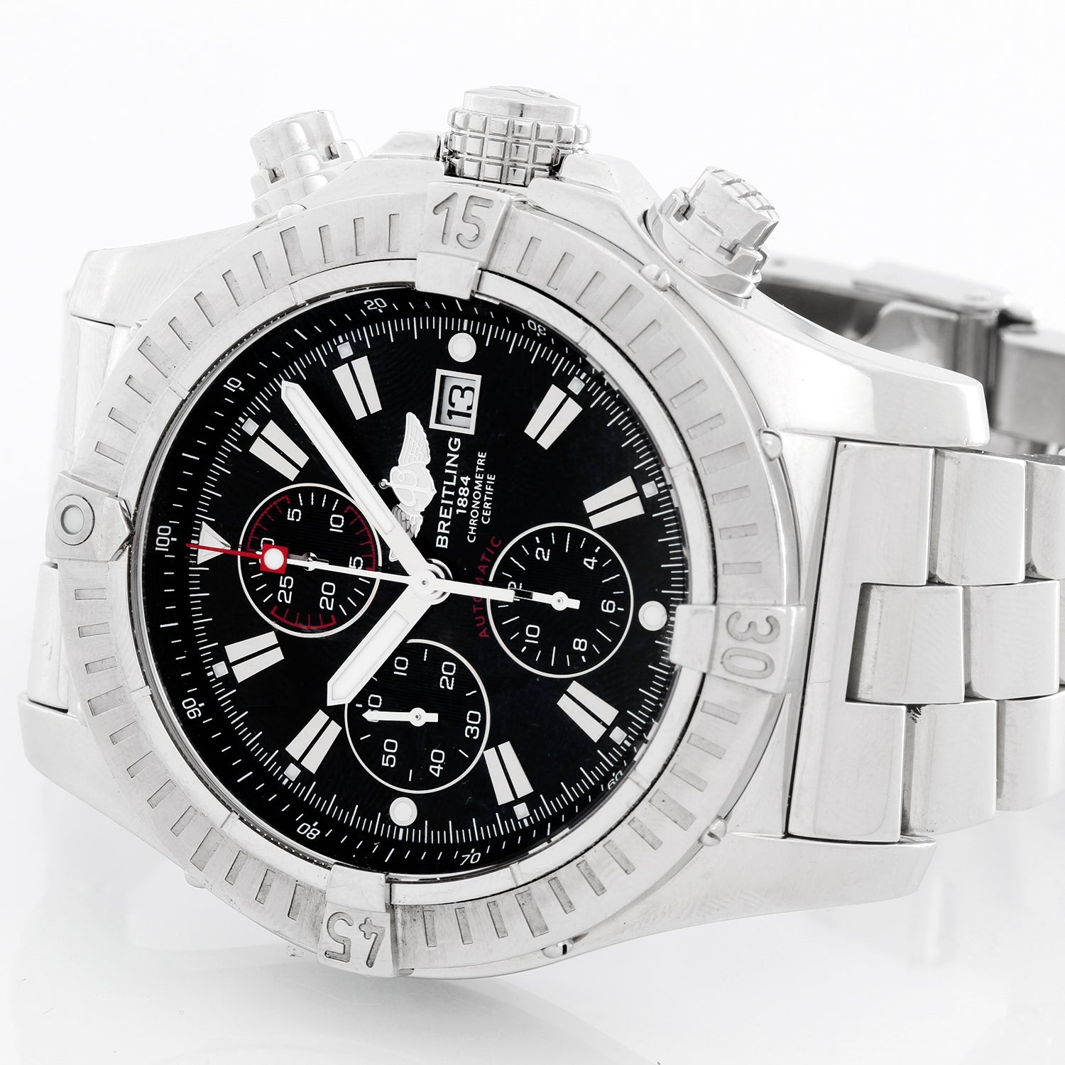 Breitling Super Aeromarine Super Avenger Watch A1337011 / B907 - Automatic winding. Stainless steel case (48 mm) . Black dial with luminous hands; Date display at 3 o'clock position. Chronograph - three sub-dials displaying: 60 seconds, 30 minutes and 12 hours. Stainless steel Breitling bracelet. Pre-owned with box and papers. Papers dated 2011.