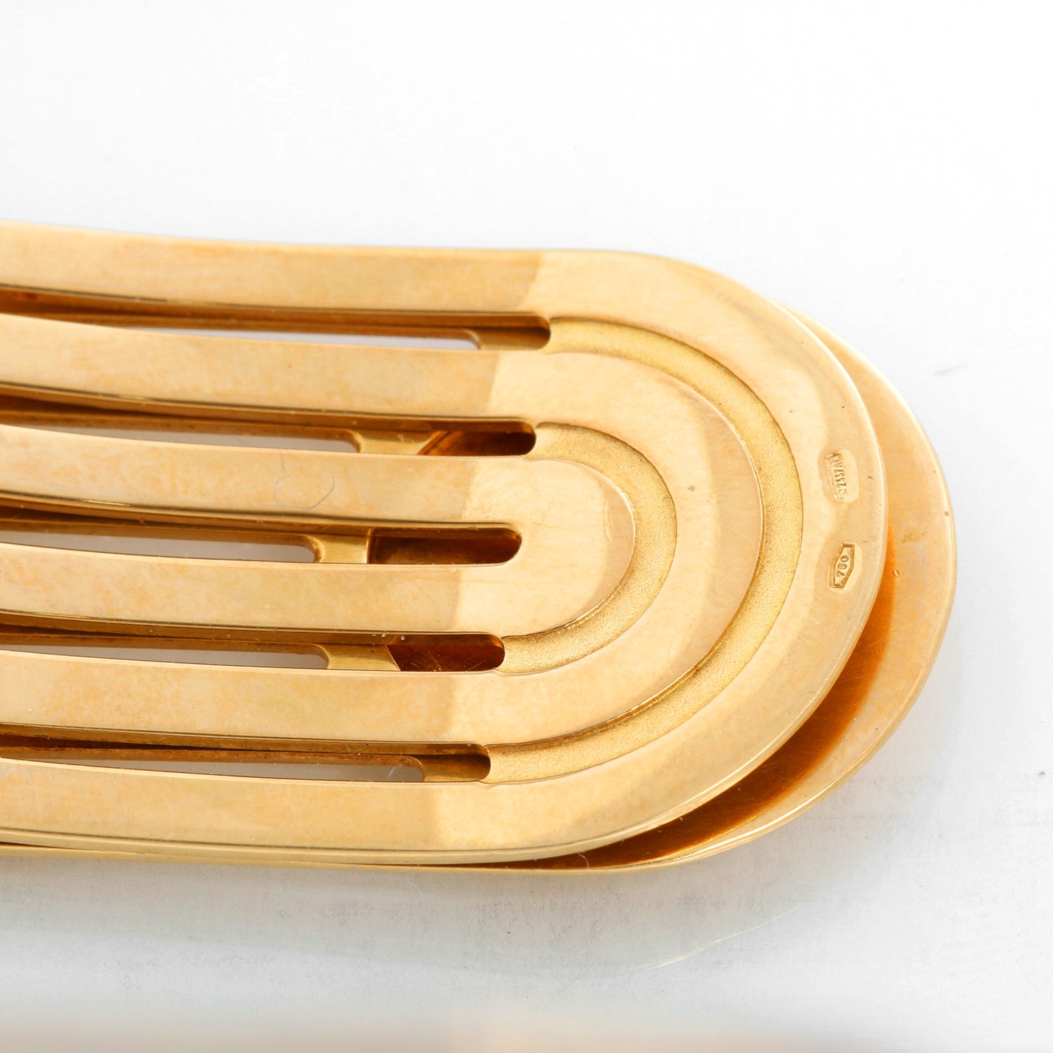 Bulgari Onyx 18K Yellow Gold Money Clip - Accented with a black onyx inlay within a raised bezel setting engraved “Bulgari Bulgari”, in high polish 18k yellow gold. Signed Bulgari. Length 1.91 inches, width .95 inch .