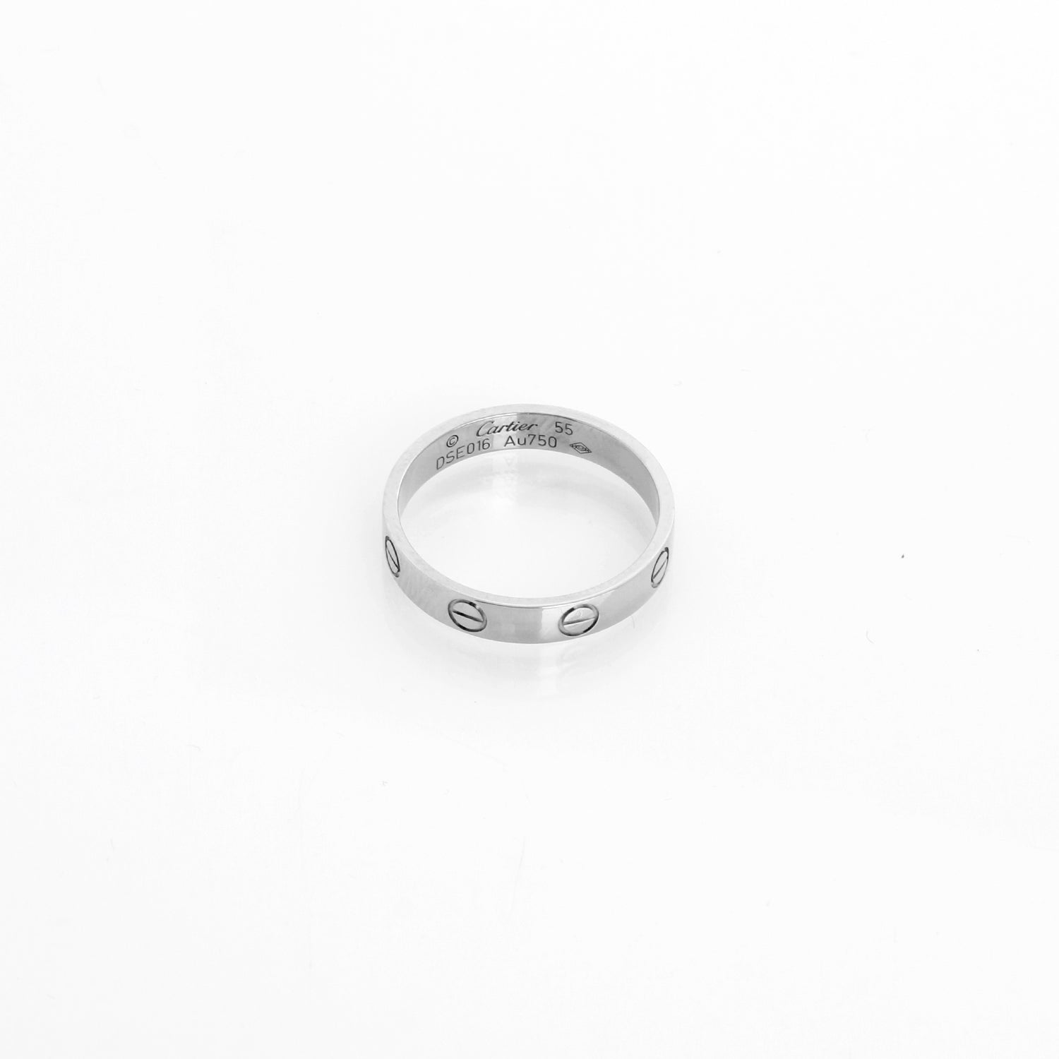 Cartier Love 18k White Gold Band Size 55 - This genuine Cartier Love ring measures 3 mm in width. It is stamped Cartier, 750, 55, DSE016 Size is 55. ( 7 1/4 US Size ) Authenticity guaranteed! Pre-owned with Cartier pouch. Recently polished at Cartier