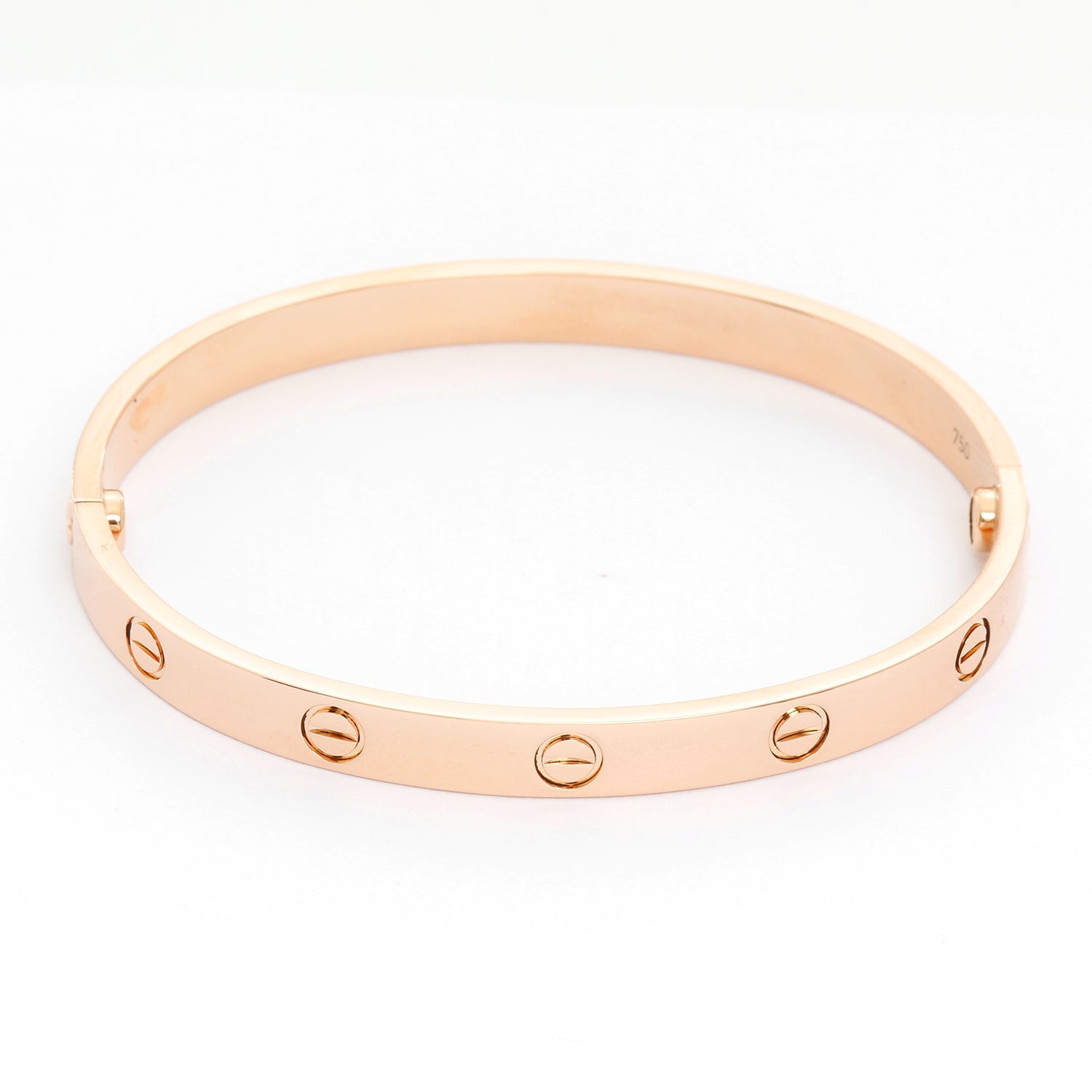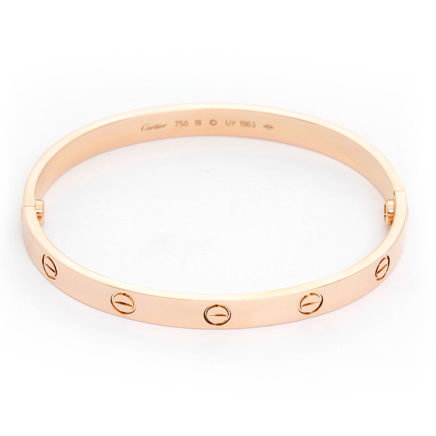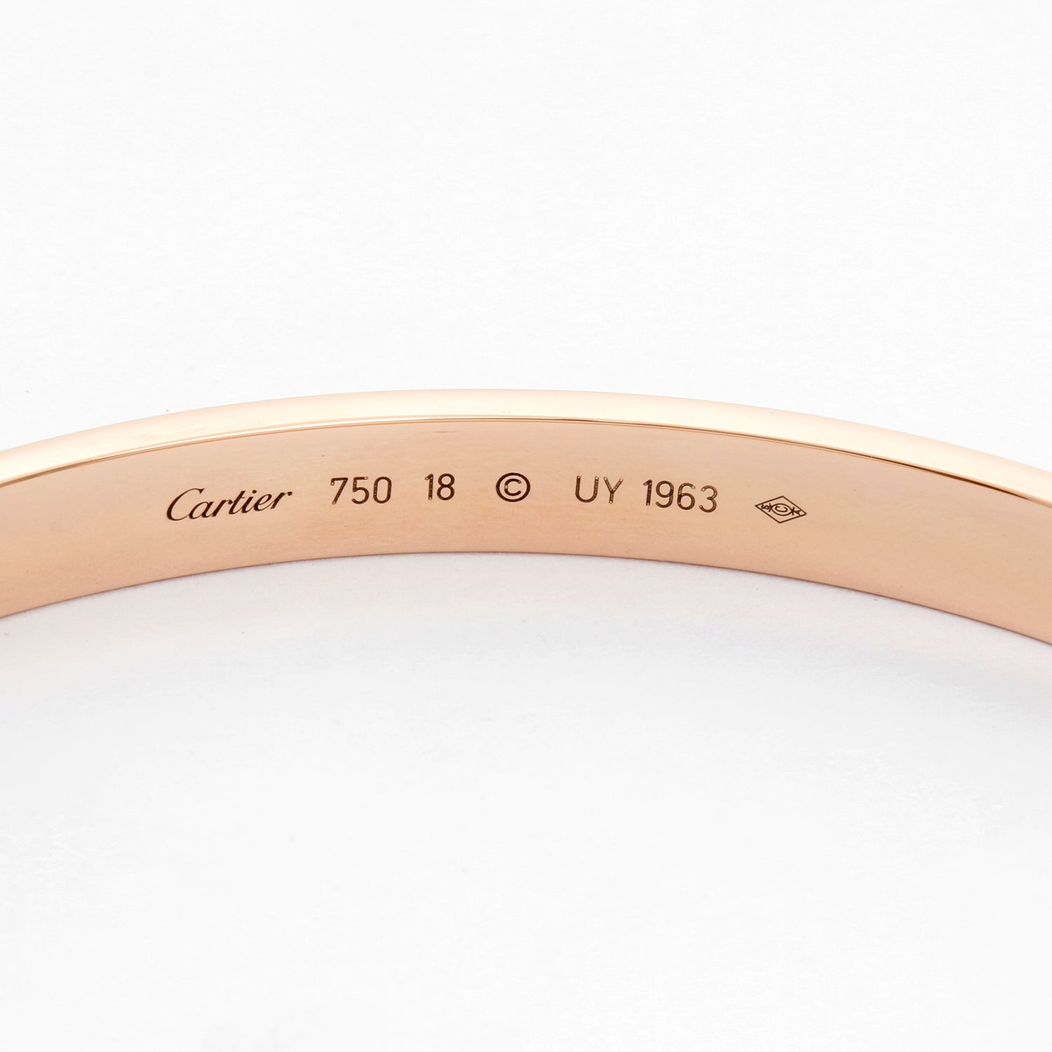 Cartier Love Bracelet 18k Rose Gold Size with Screwdriver - This beautiful bracelet is stamped Cartier, 18, 750 and UY1963. This is a great piece for everyday as well as dress. Authenticity guaranteed. Like new condition with no dings or scratches. Includes Cartier box with new screw system .