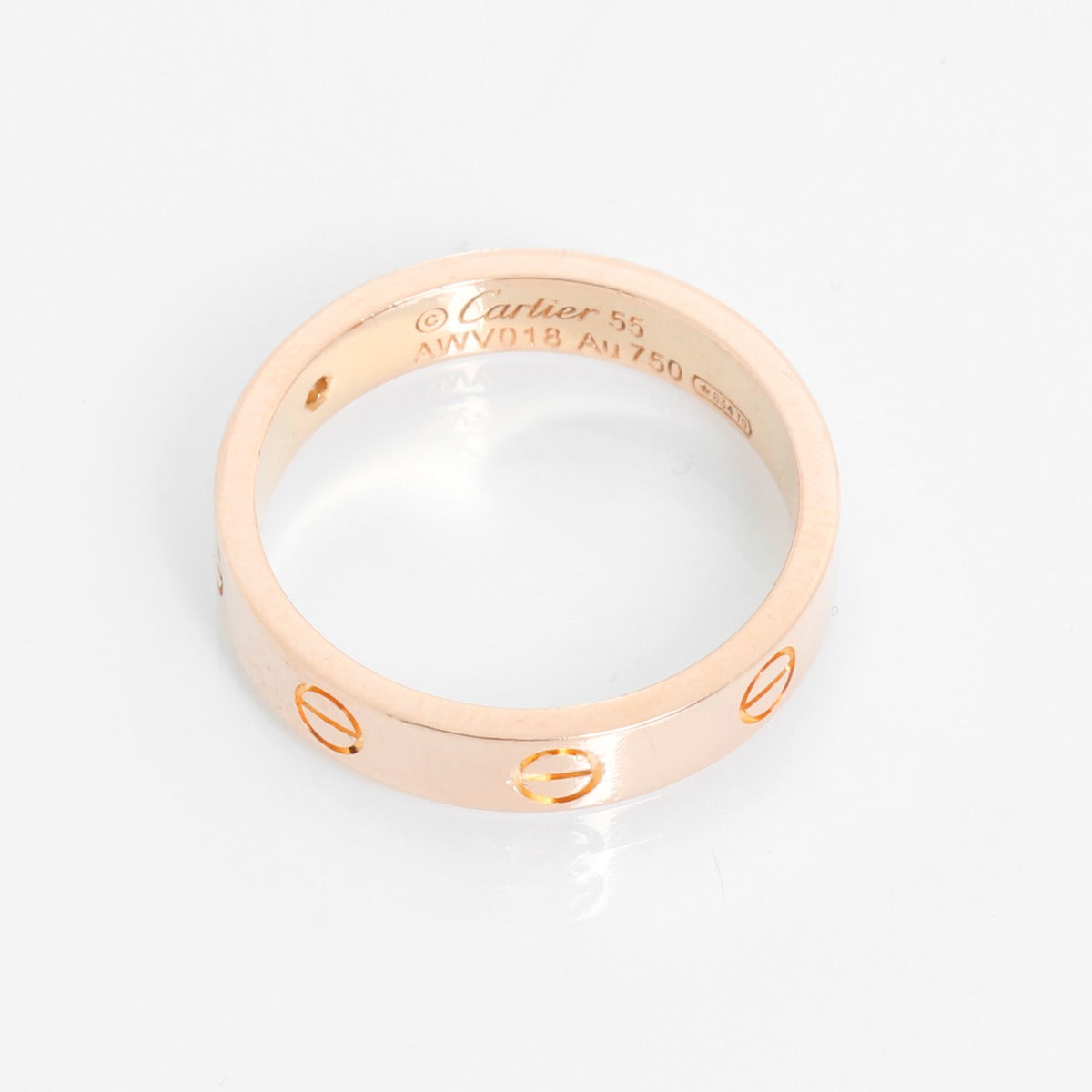 Cartier Love Small 1 Diamond Rose Gold Wedding Band Size 7 1/4 - Cartier Love Wedding Band. 18K Rose gold Wedding band set with 1 brilliant cut diamond totaling .02 carats. Width 4 mm. Size 55. Pre-owned. Hallmarked.