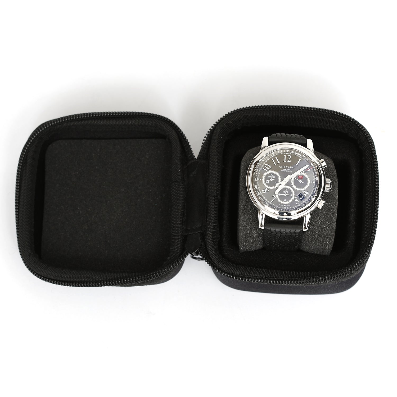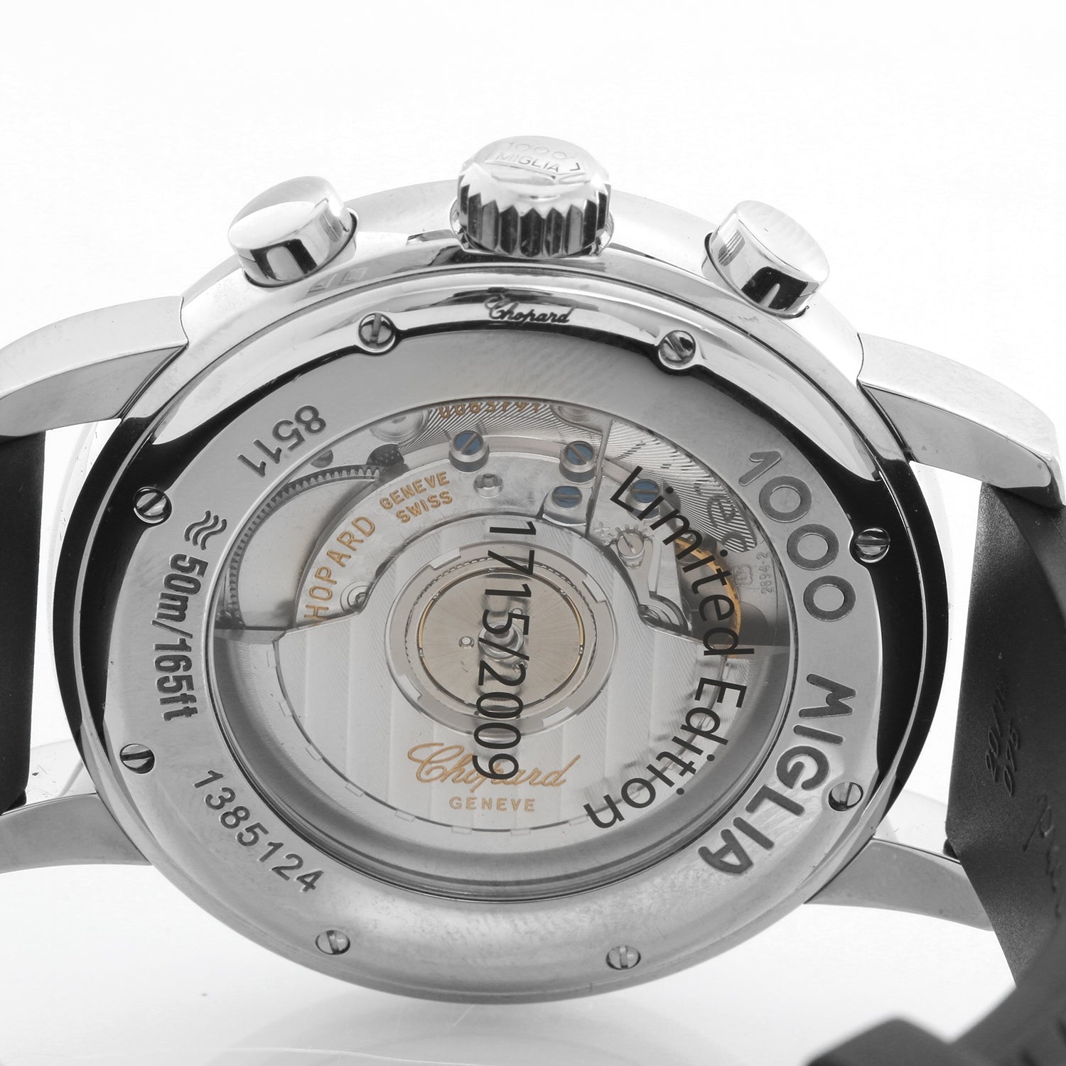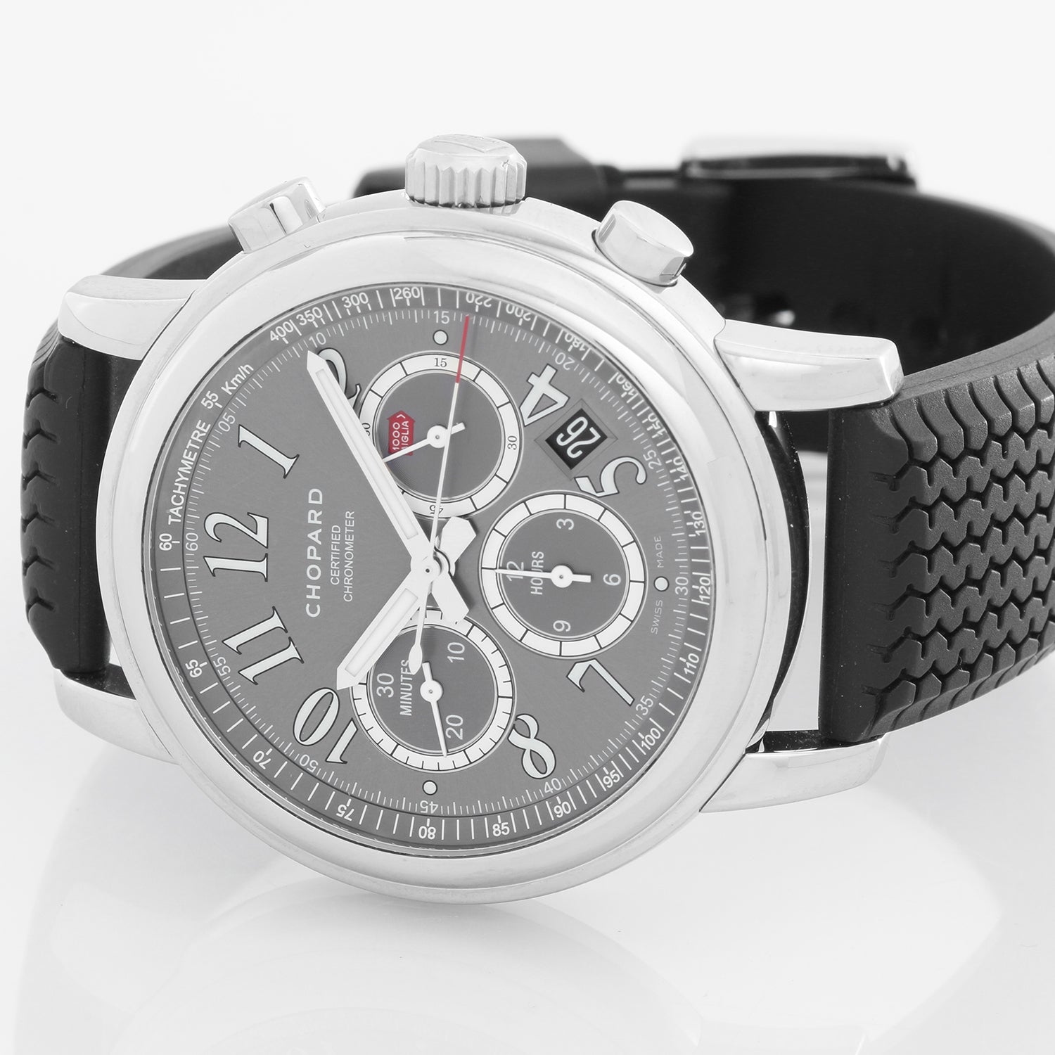 Chopard Mille Miglia Chronograph Men's Watch 8511 - Automatic. Stainless Steel case ( 40 mm ) . Slate grey dial; sub dials; date in between 4 & 5 o'clock . Rubber strap band with Chopard buckle . Pre-owned. Limited edition 1715/2009.