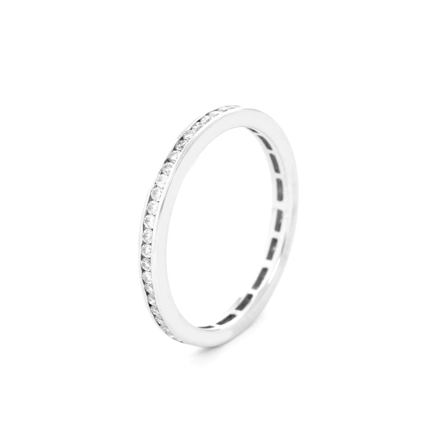 Diamond 18K White Gold Band Size 6 1/4 - Approximately .5 ct of diamond in this beautiful band. Colo H-I , Clarity SI2-SI1. Total grams 1.5 grams. Pre-owned with custom box .