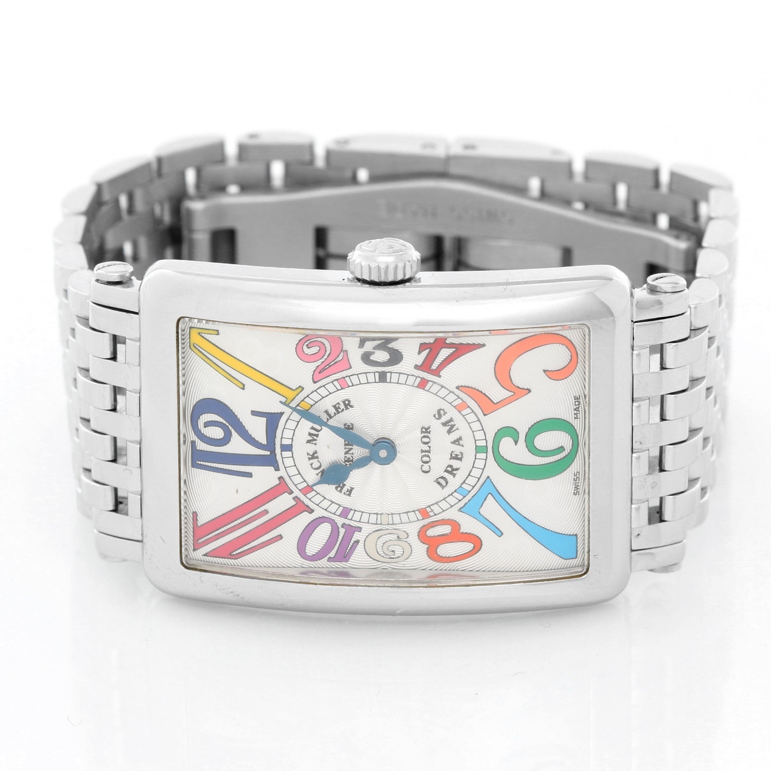 Franck Muller Color of Dreams Men's/Ladies Stainless Steel Watch 952QZ - Automatic winding. Stainless steel case(26mm X 36mm). Silver guilloche dial with multi color Arabic numerals. Stainless steel Franck Muller bracelet. Pre-owned with custom box. Wrist size is 5 1/2 inches
