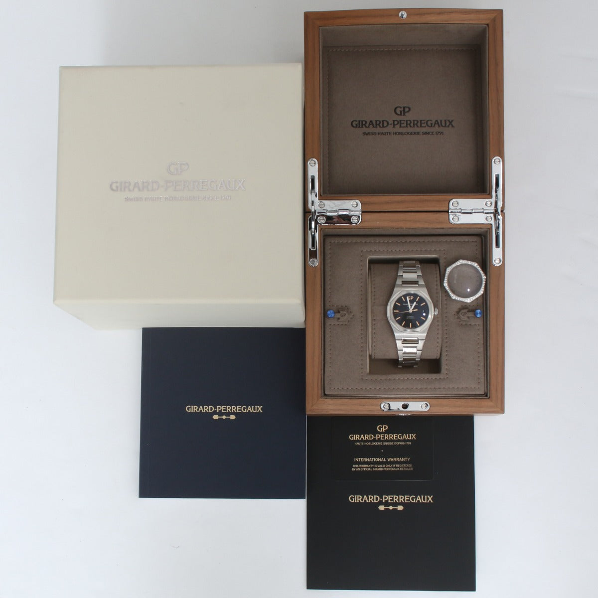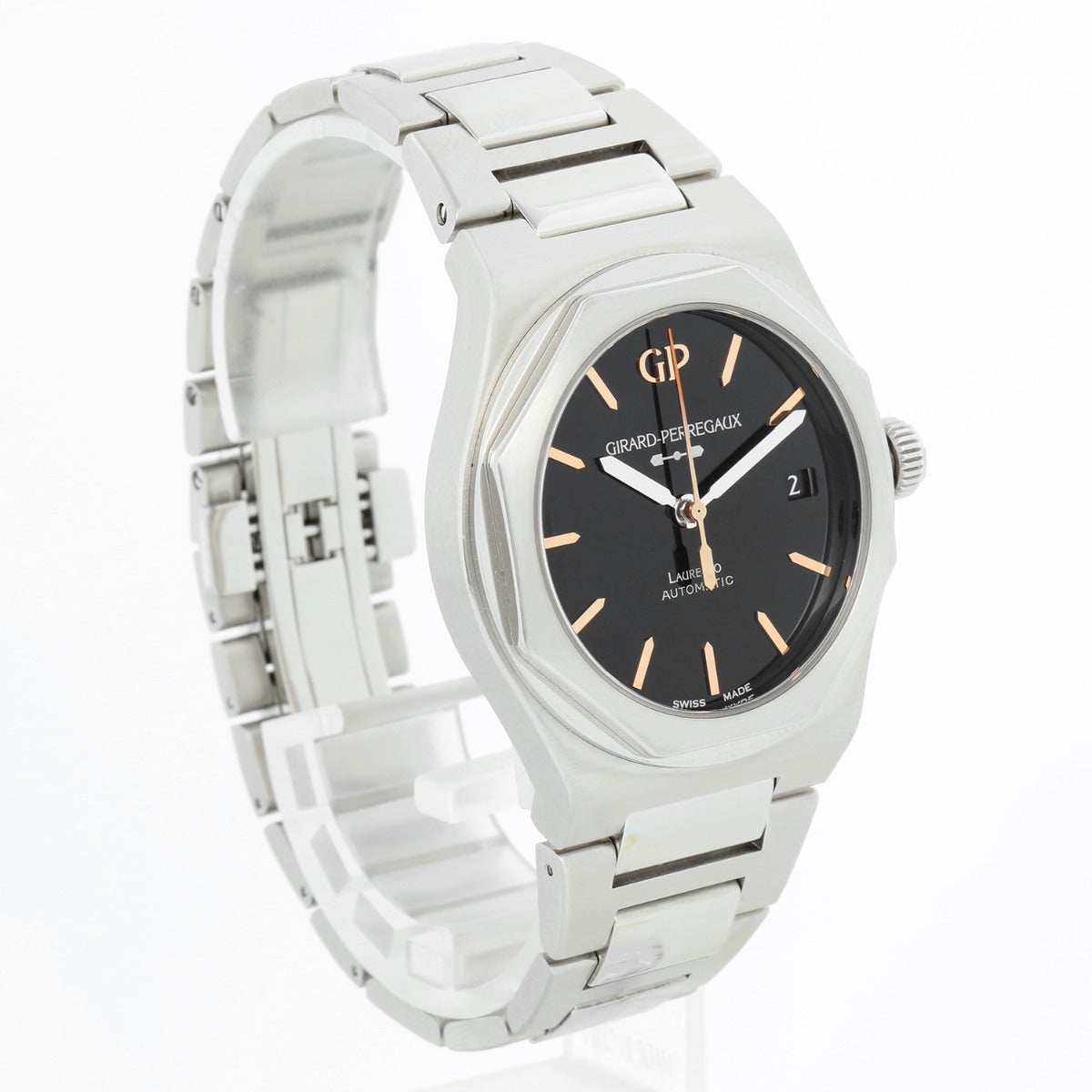 Girard-Perregaux Stainless Steel Laureato Limited Edition 38mm - Automatic winding. Stainless steel case (38mm). Comes with additional diamond bezel. Black onxy dial with rose gold markers. Stainless Steel bracelet. Pre-owned with Girard Perregaux Box and card. Dated 2021