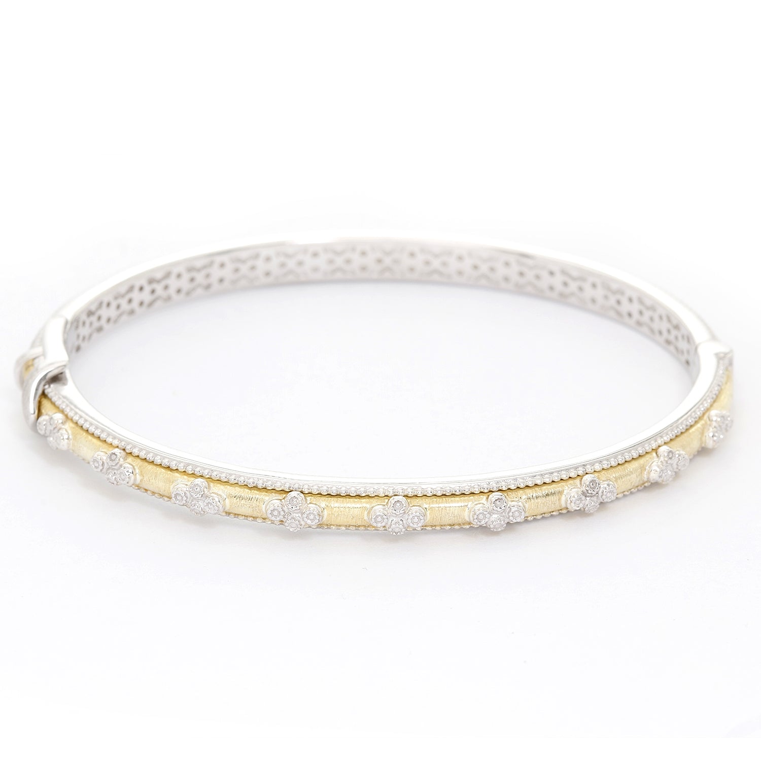 Jude Frances Mixed Metal Delicate Quad Cuff - . Sterling Silver body with brushed 18K Yellow Gold finish. Beaded edged with white rhodium four beaded flower. Unused with Jude Frances box.