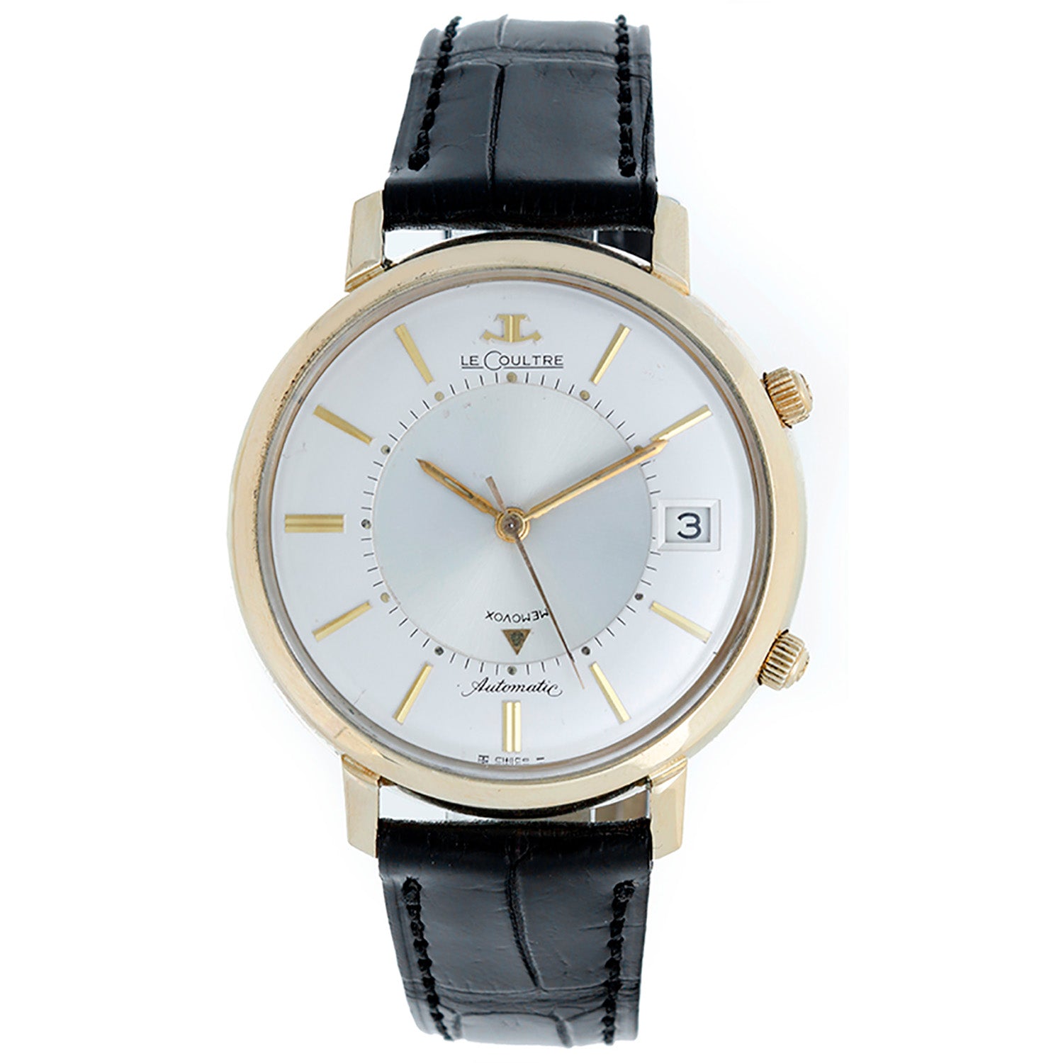 LeCoultre Vintage Memovox Alarm 10k Gold Filled Men's Automatic Watch - Automatic winding. 10k yellow gold filled case (38mm diameter). 2-tone silver dial with gold stick markers; date at 3 o'clock. Strap band. Pre-owned with custom box. This is a very collectible LeCoultre with alarm feature from the 1950's/60's.