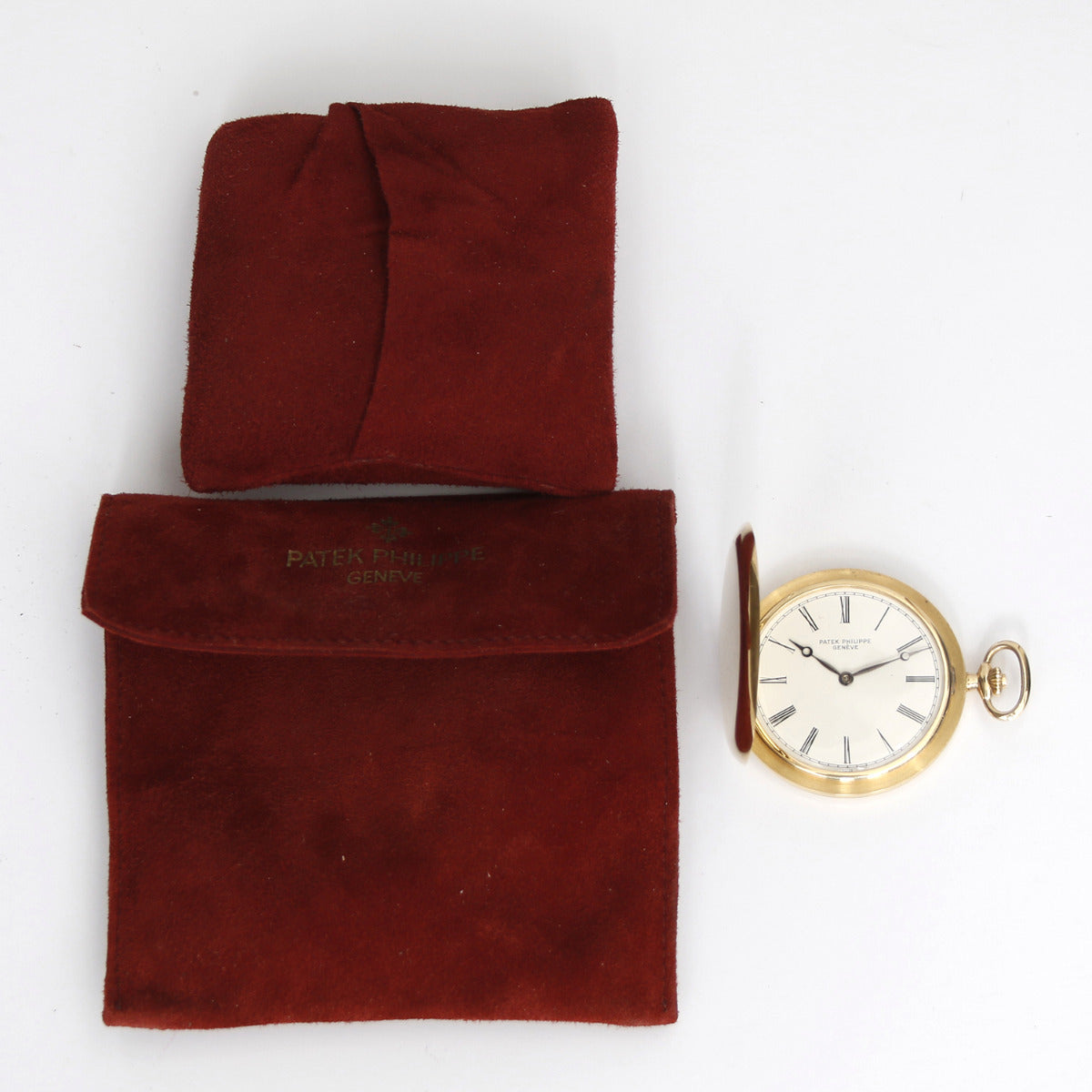 Patek Philippe & Co. 18K Yellow gold Hunter Case Pocket Watch Ref 865 - Manual movement; 18 jewels. 18K Yellow gold ( 48 mm ). White dial with Roman numerals. Pre-owned with Patek Philippe box. Current retail $52,000.