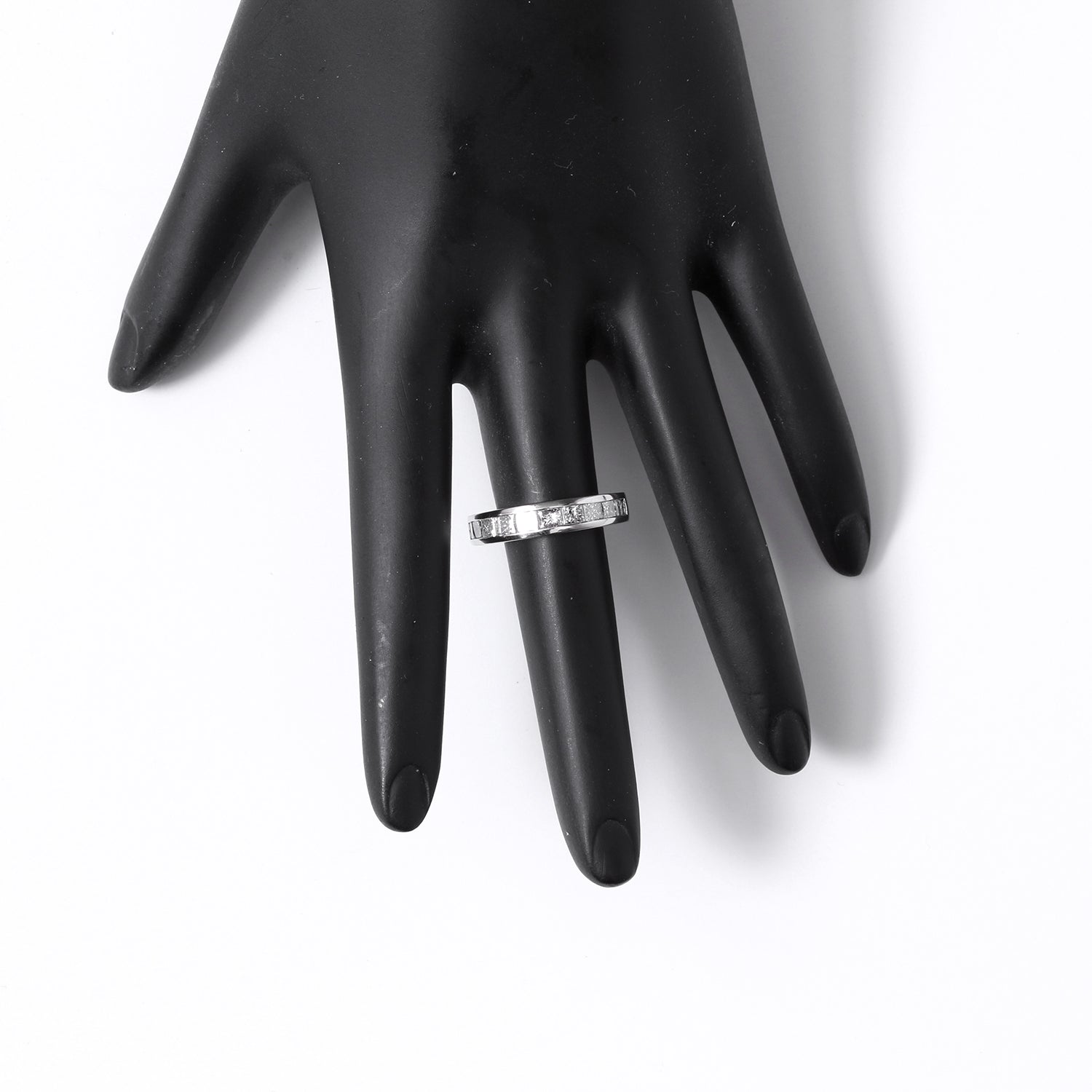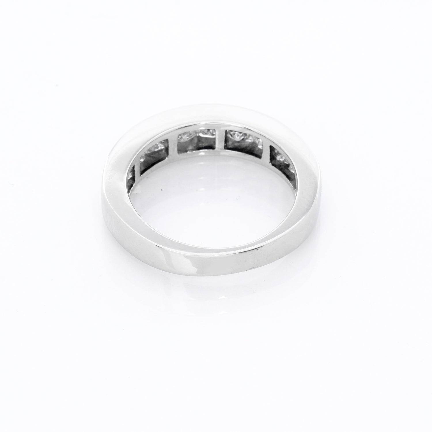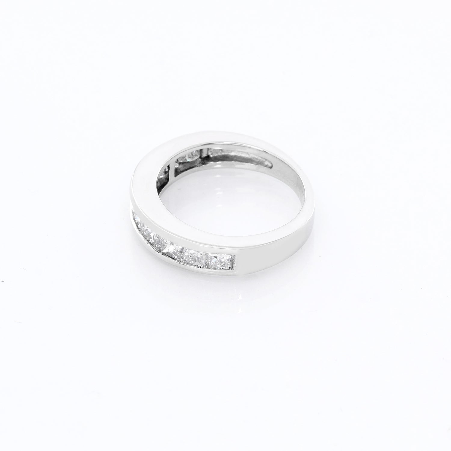 Princess Cut Diamond Platinum Band Size 5.5 - . 10 Princess cut diamonds. Apr. 1.2 cts. Total weight 5.6 grams.