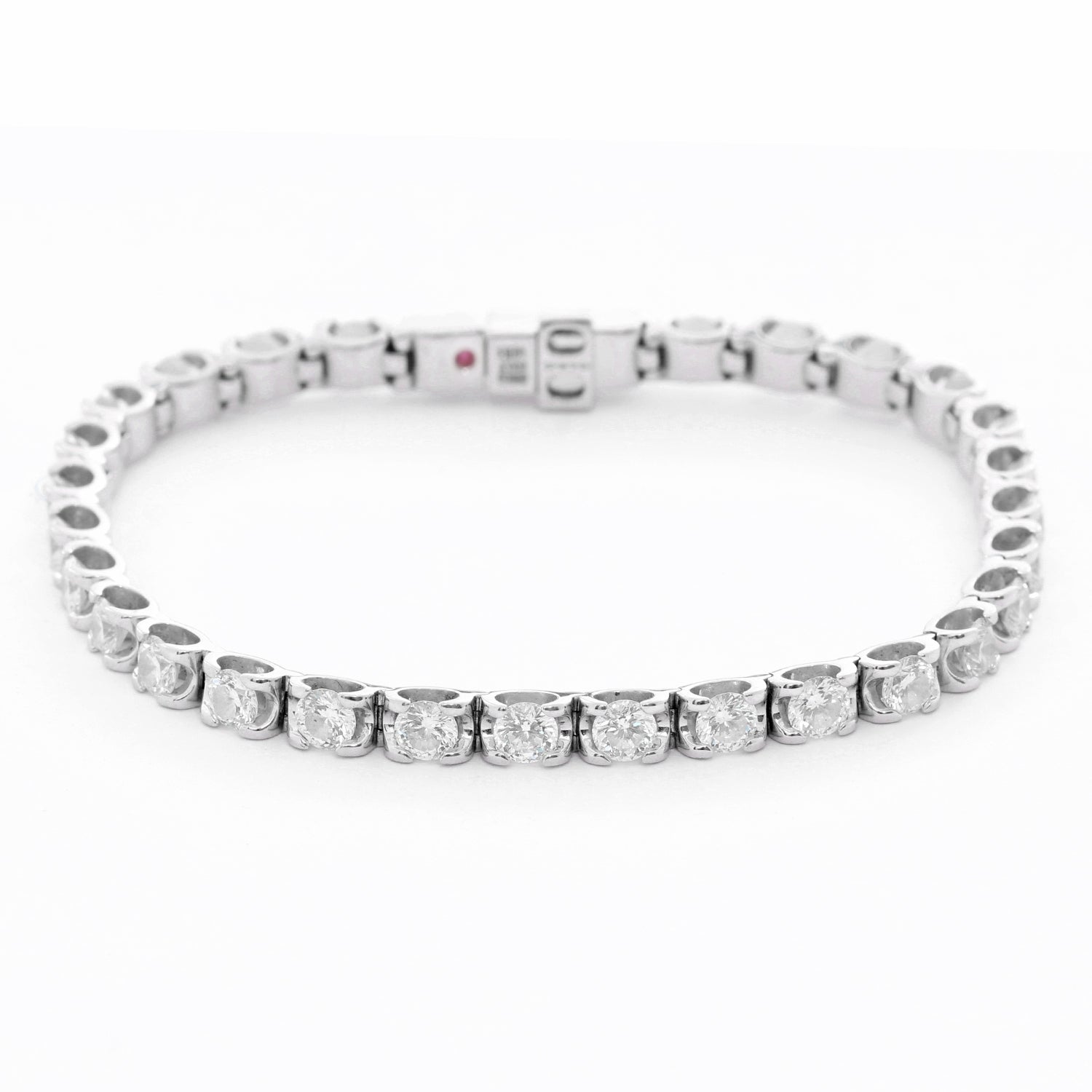 Roberto Coin 18K White gold Cento Collection Tennis Bracelet - . From Roberto Coin, the Cento collection features this stunning diamond tennis bracelet. Crafter in 18K White gold with 31 Cento round brilliant cut diamonds weighing 6.9cts. H - VS2 . Signature ruby is added to the inside of the bracelet. Hallmarks include, designer signature, serial number, 18K.
