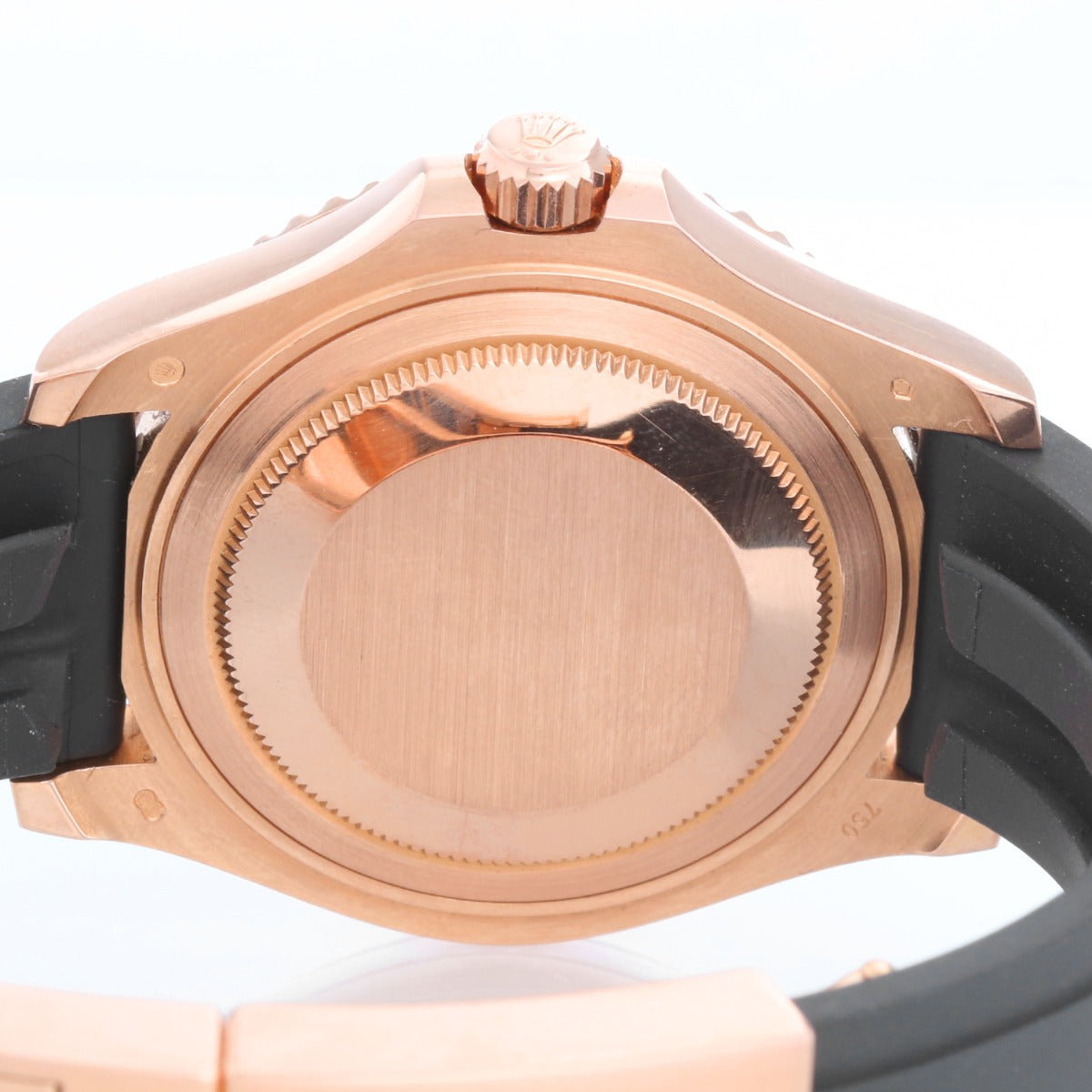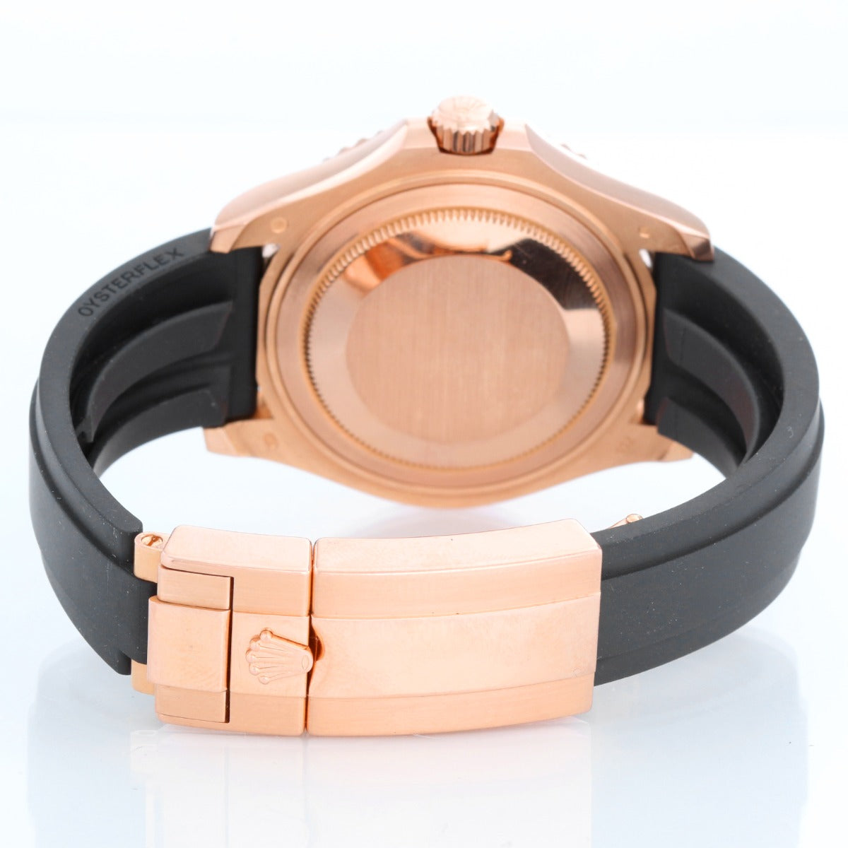 Rolex Yacht-Master 18k Everose Gold Men's Watch 268655 - Automatic winding. 18k rose gold case and rotating bezel with black insert (37mm diameter). Black Dial with luminous style white hour markers. Black rubber strap band with 18k rose gold deployant clasp. Pre-owned with Rolex box and books.