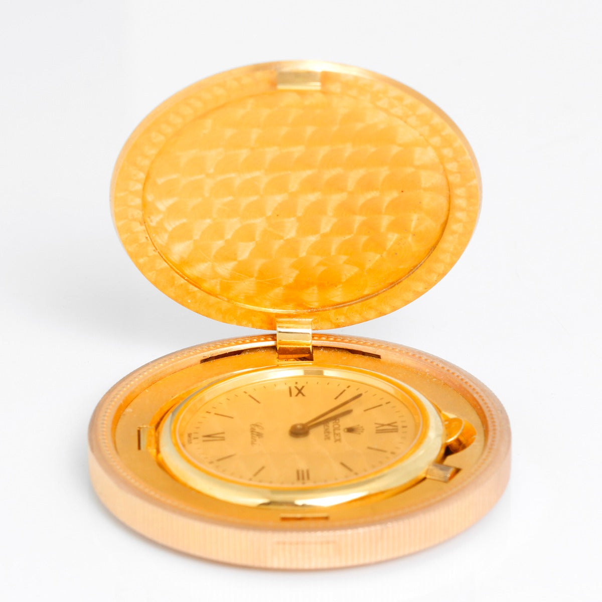 Rolex 18K Yellow Gold Twenty Dollar Coin Watch - Manual winding. 18K Yellow gold coin case ( 34mm). Champagne dial with Roman and Stick hour markers; Signed Rolex Geneve Cellini. Pre-owned Rolex box and book. Very rare and collectible
